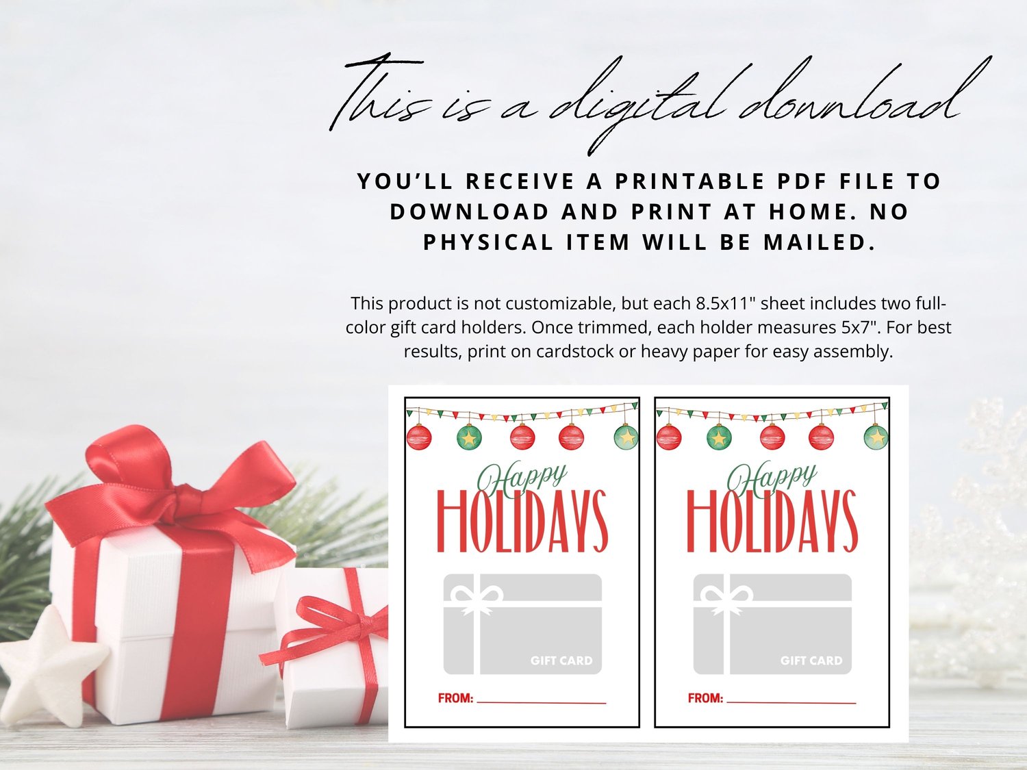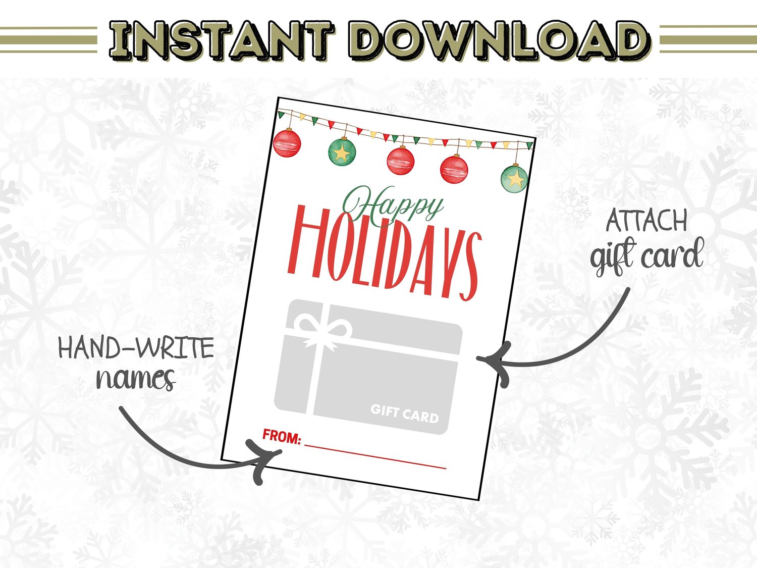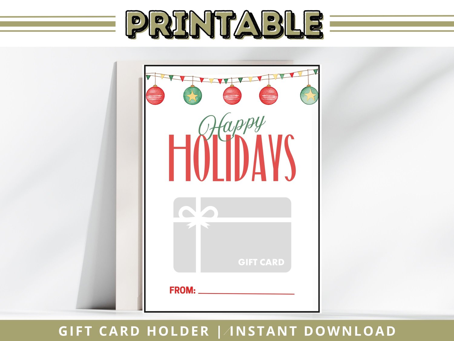 Happy Holidays Gift Card Holder Printable – Christmas Gift Card Template – Instant Download