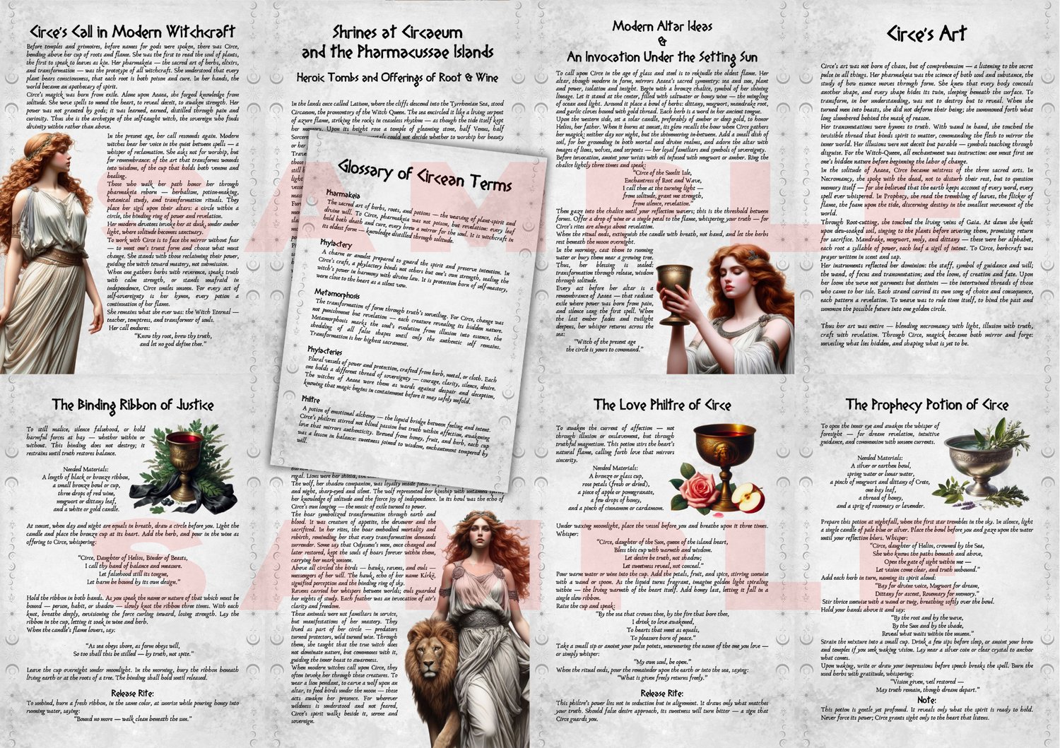 These beautifully illustrated printable Grimoire pages explore her divine lore, symbols, spells, hymns, and modern devotions, from potions and philtres to rituals of self-sovereignty and truth.