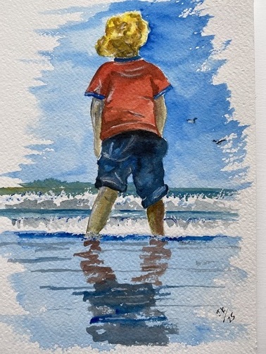 Paddling (watercolour vignette)