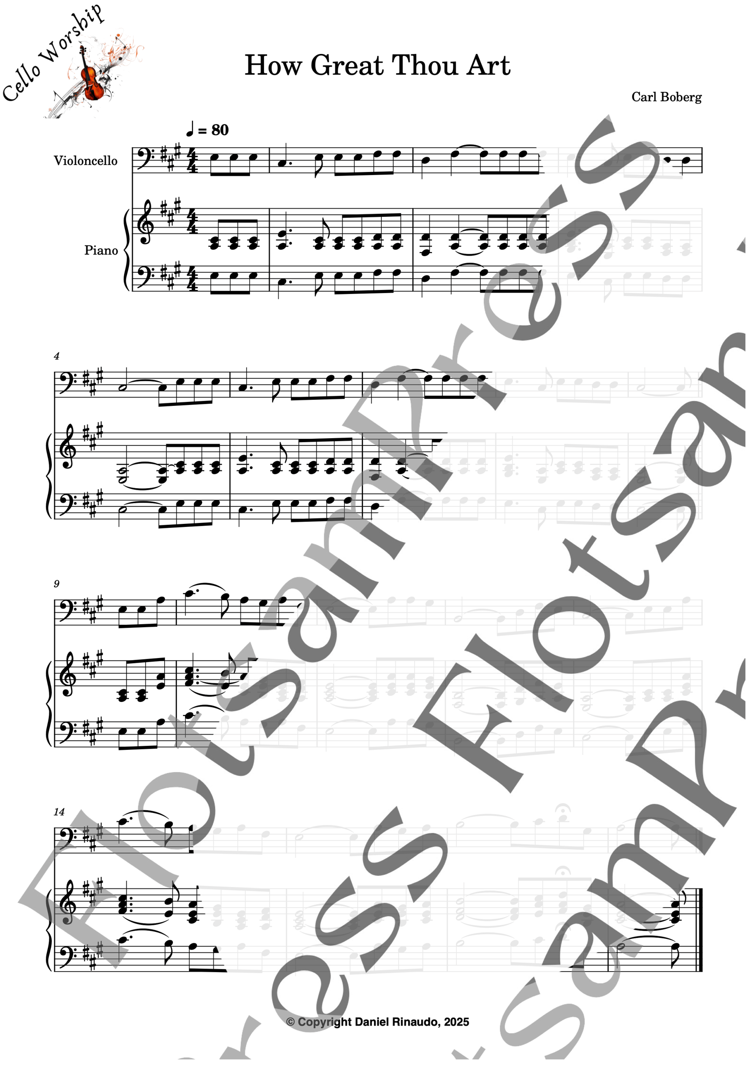 This arrangement of How Great Thou Art is written for beginner to lower-intermediate cello players, with a simple and supportive piano accompaniment. Perfect for church services, lessons, or home practice.