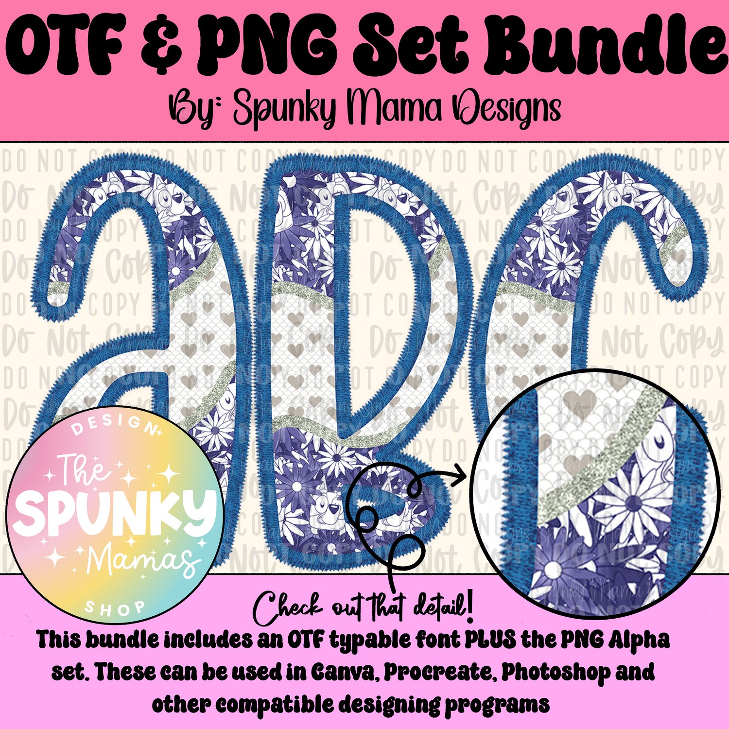 Bluey Flowers OTF Font and Digital PNG Alpha Set