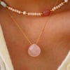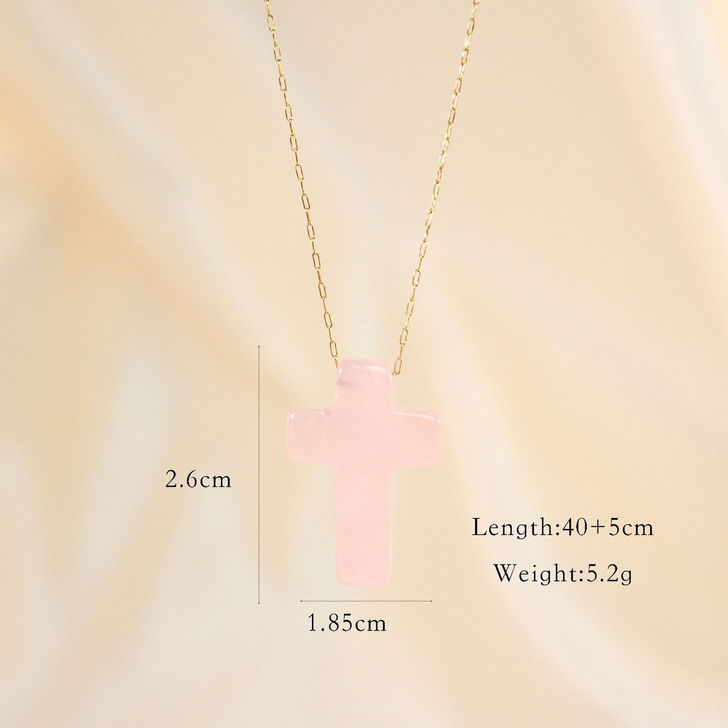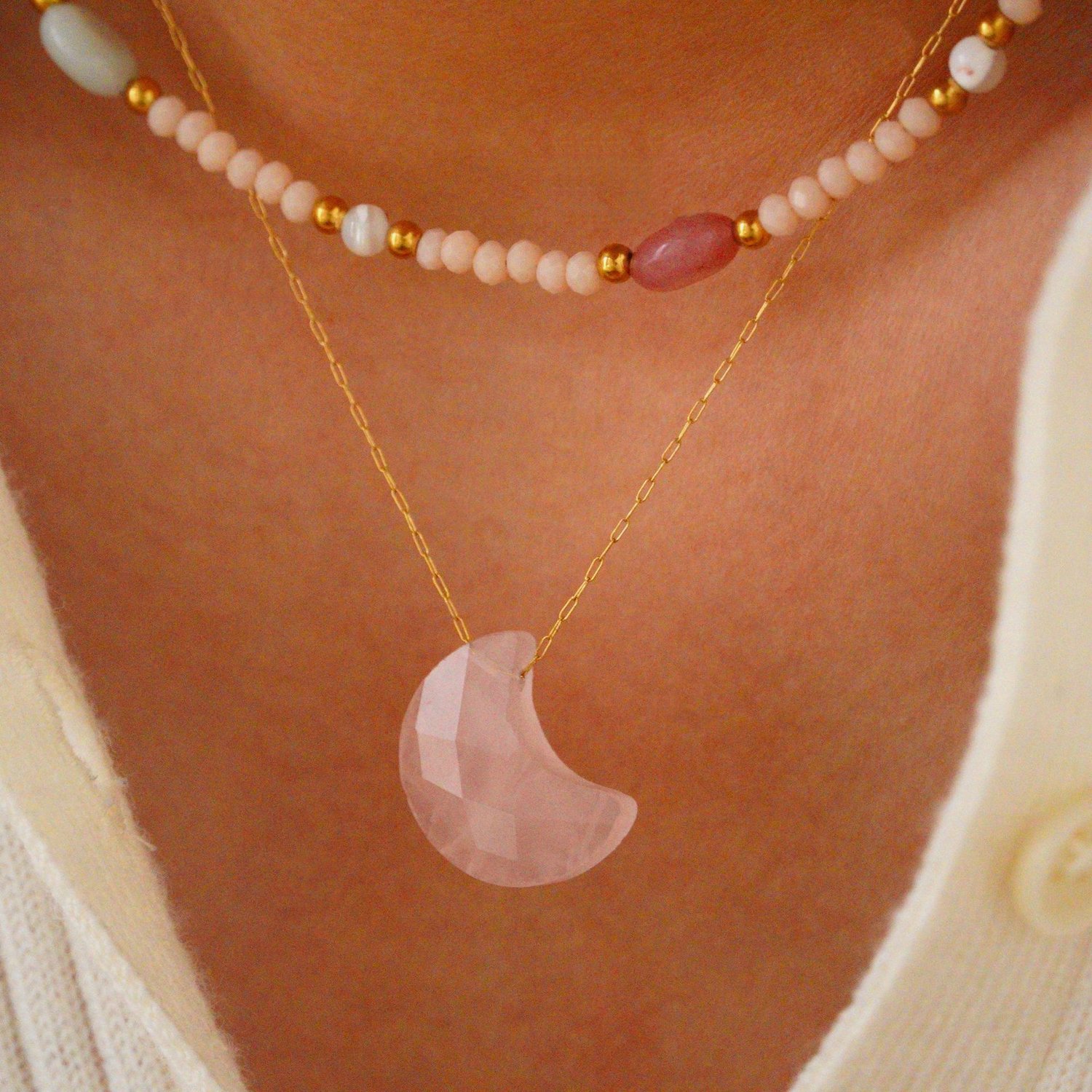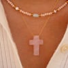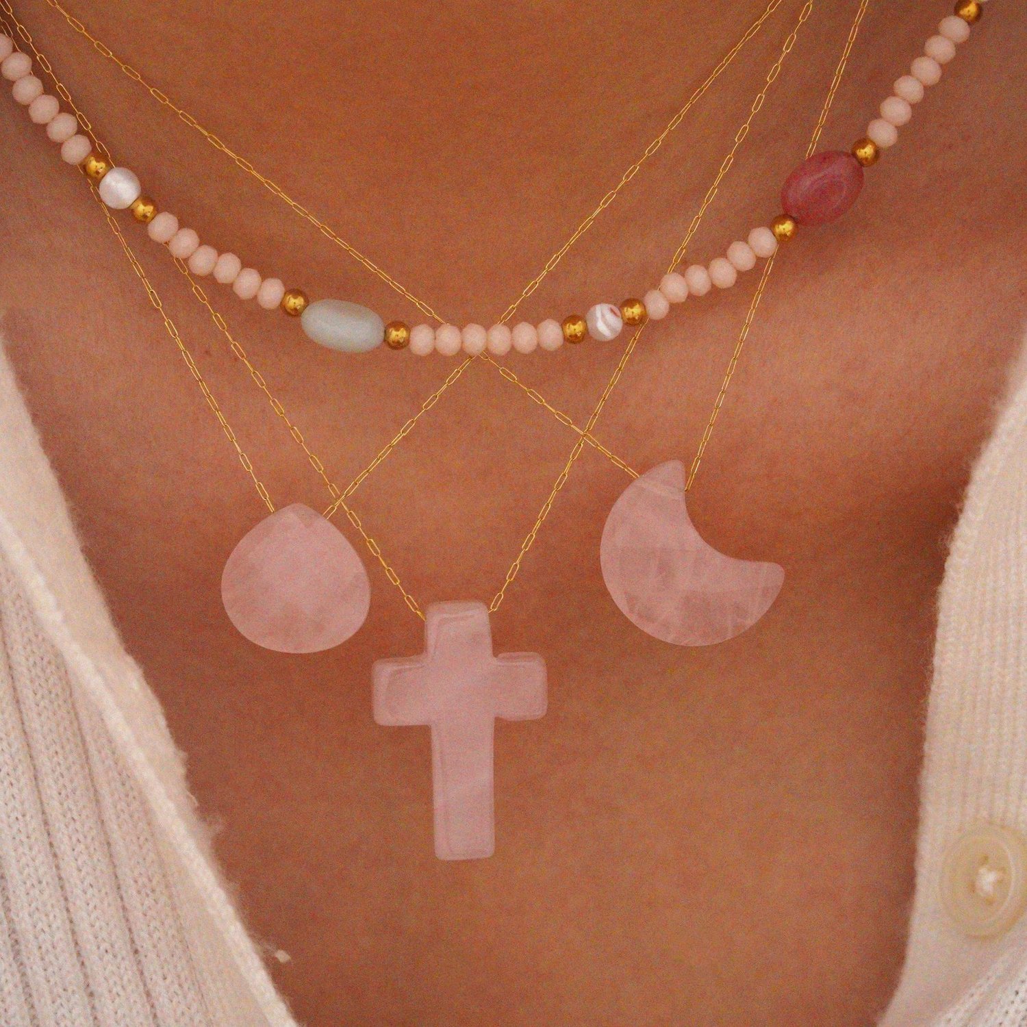 Luxury stacked handmade beaded pink crystal teardrop moon cross stainless steel 14K gold layered necklace