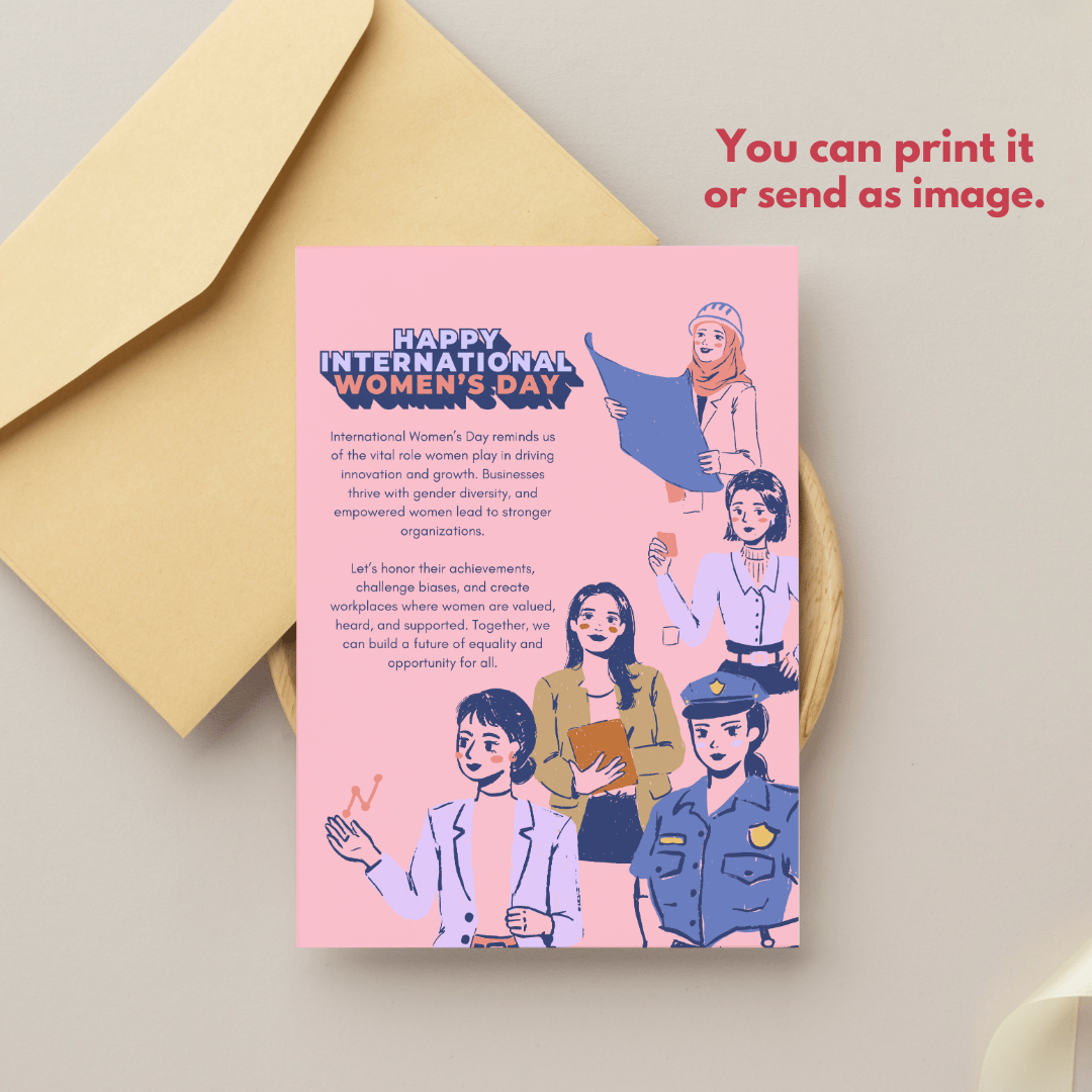 Designed with a cartoon aesthetic and a focus on inspiring text, this printable card is perfect for distributing to friends, coworkers, or within your enterprise. Highlighting the importance of the fight for women's rights and leadership, this design encourages unity and empowerment with its professional yet approachable style. Whether for personal or professional use, this template allows you to customize text to suit your audience.
