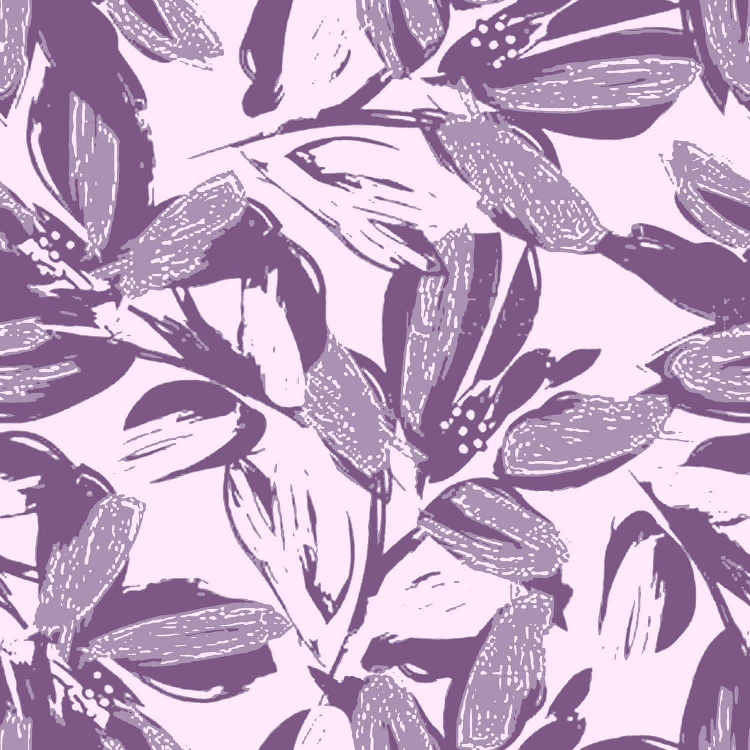 Sophisticated purple floral leaves with artistic textures and silhouettes.