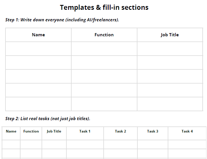 If you’d like to move faster, we also offer facilitated Role Mapping sessions. Together we’ll map your structure in real time, uncover AI opportunities, and create a ready-to-use action plan.