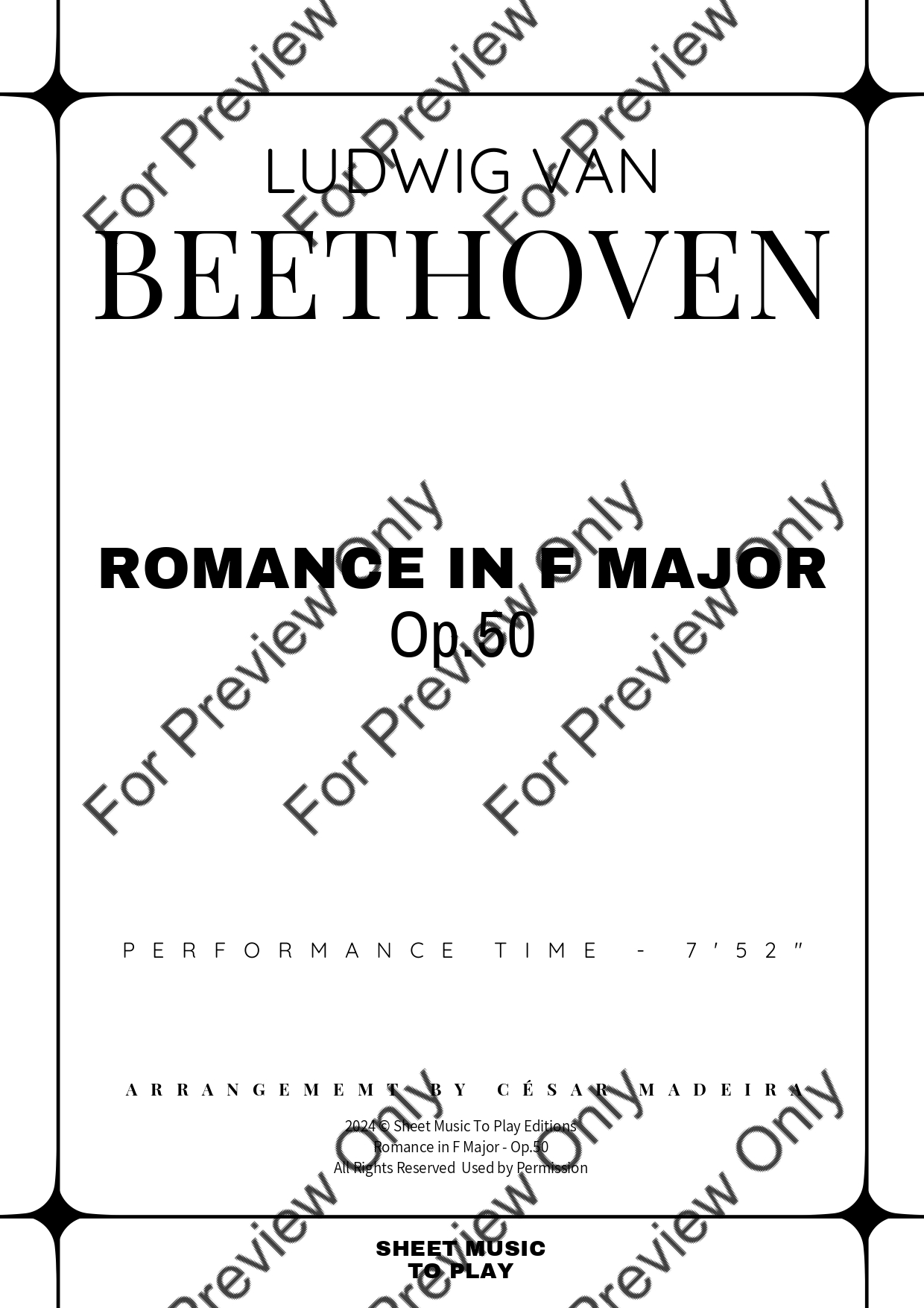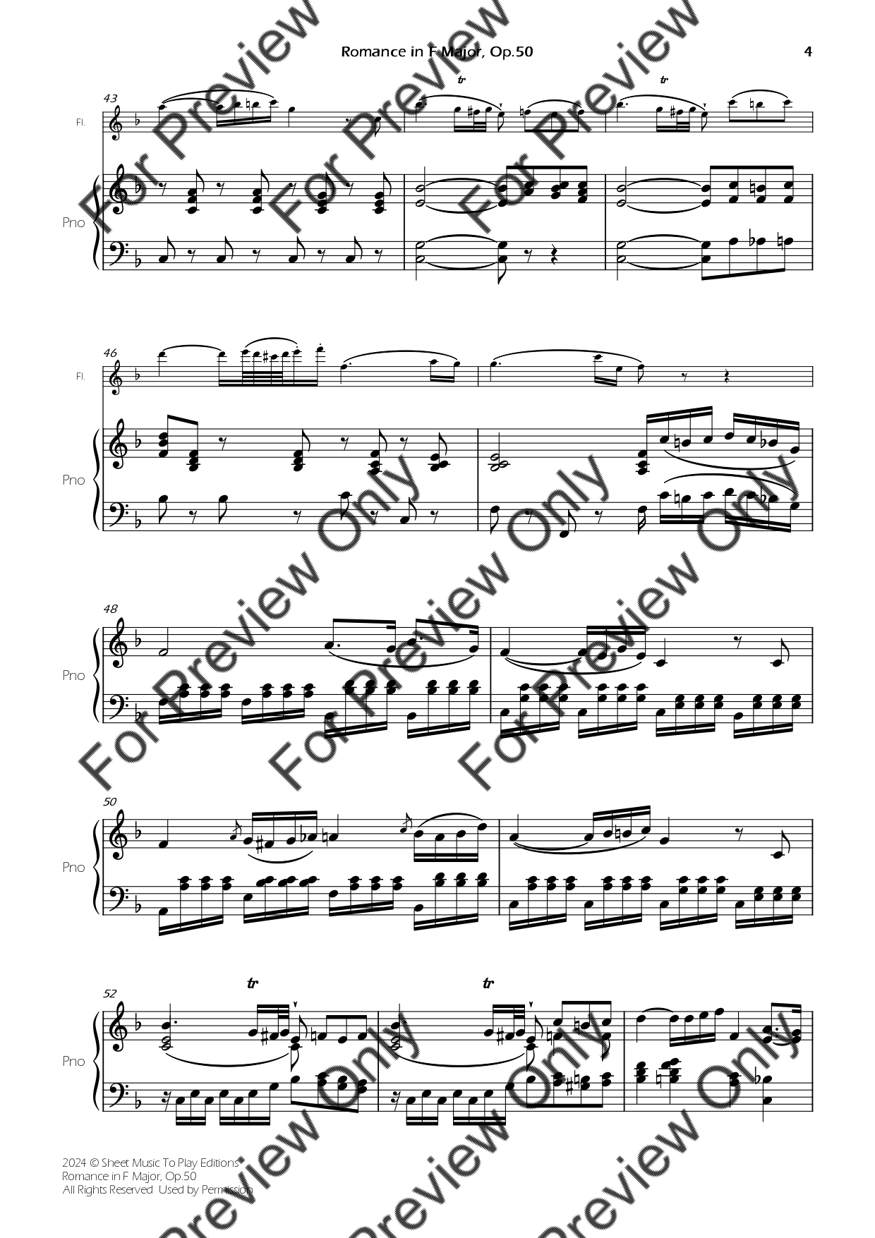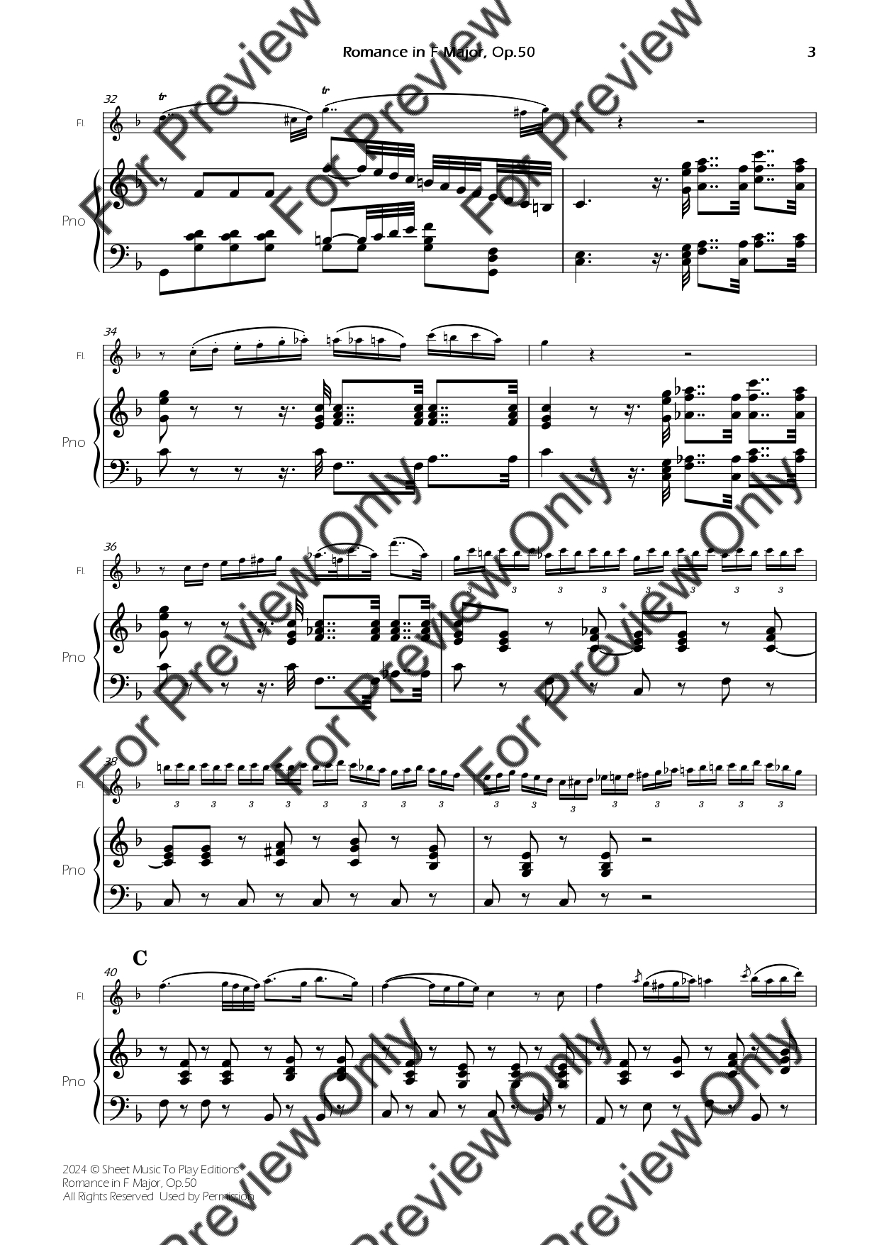 Romance in F Major, Op.50 by Ludwig Van Beethoven. Arrangement for Flute and Piano. With Full Score and Individual Parts. Have fun!