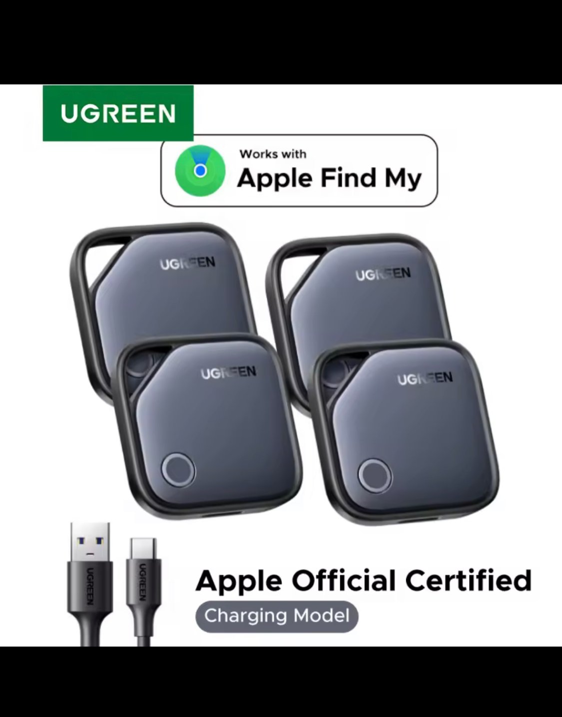 ## **Smart Tag Bluetooth Item Finder – USB-C Rechargeable | 1-Year Battery | Apple Find My (iOS Only)**