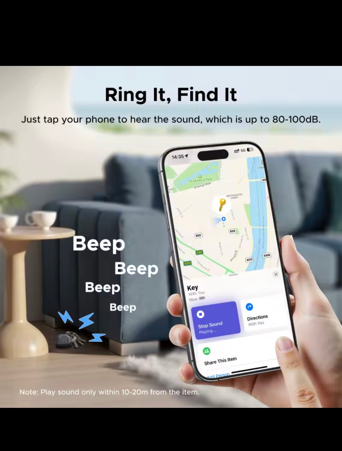 Utilizes Bluetooth for accurate, close-range finding. Perfect for locating items around the house, office, or in your car.