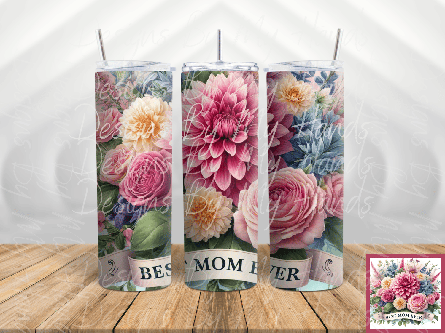 Celebrate the wonderful woman who means so much with our "Best Mom Ever" Floral Tumbler. This elegantly designed tumbler is adorned with a vibrant bouquet of flowers, symbolizing the beauty and nurturing nature of all mothers. It's the perfect way to show your love and appreciation on Mother’s Day, her birthday, or any day you want to make extra special. This 20 oz tumbler is made of food grade stainless and steel double walls. Tumbler can hold up to 600 ml. Which can keep your beverage hot or cold for hours. Skinny tumbler with slide lid and reusable straw.