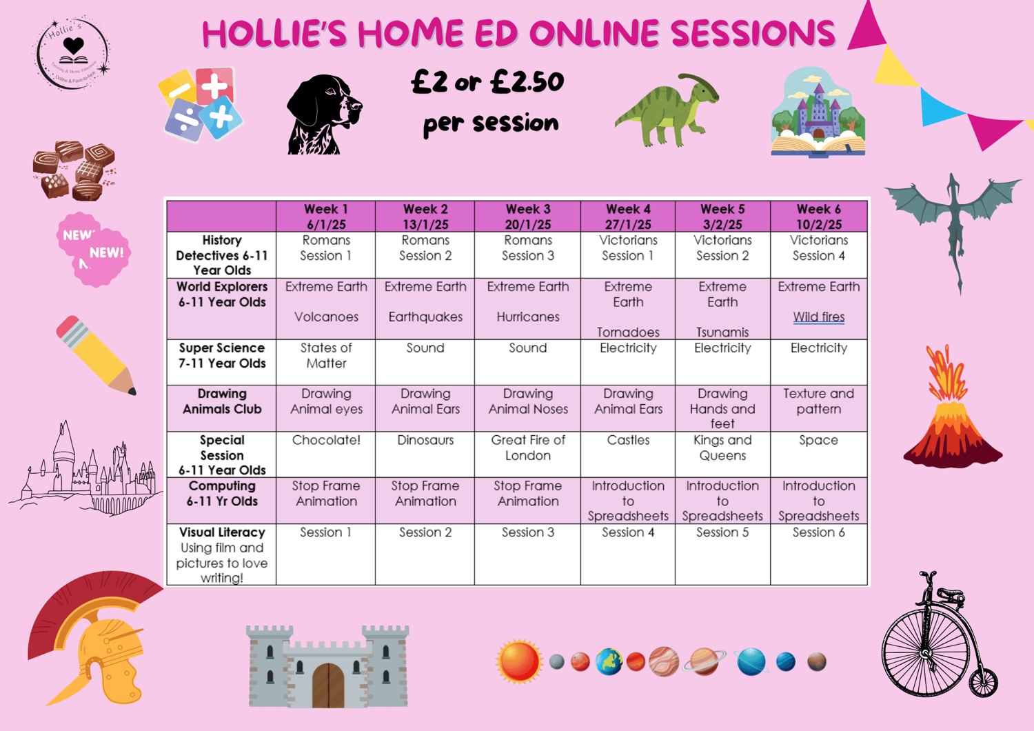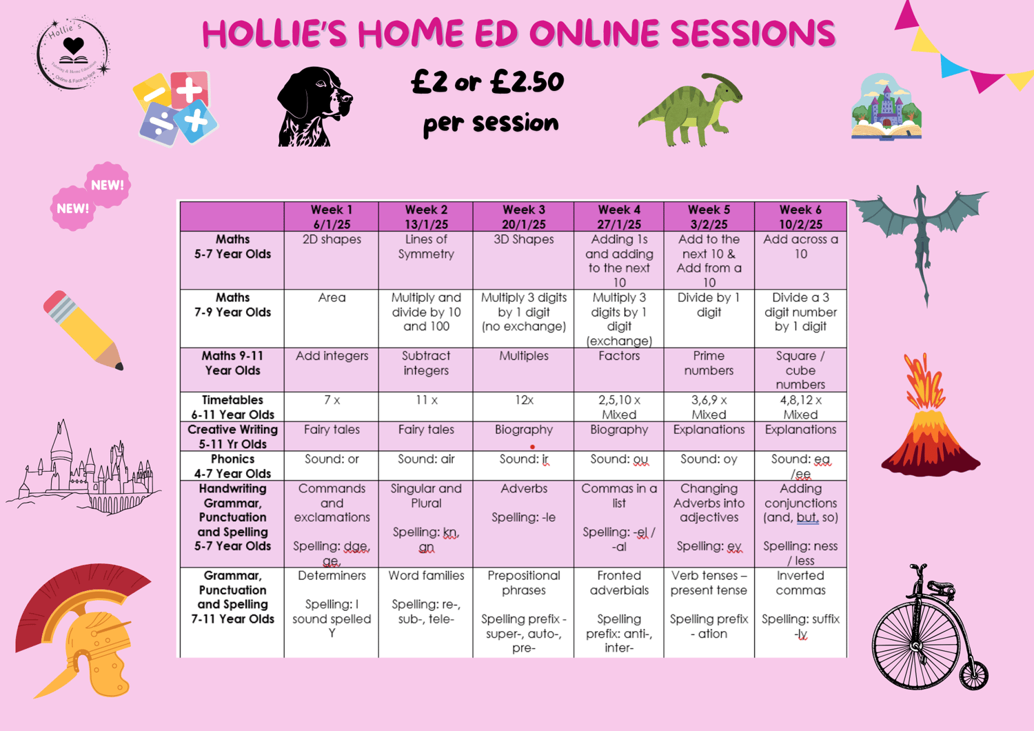 FREE - Hollie's Home Education Session Overview Jan - Feb 2025