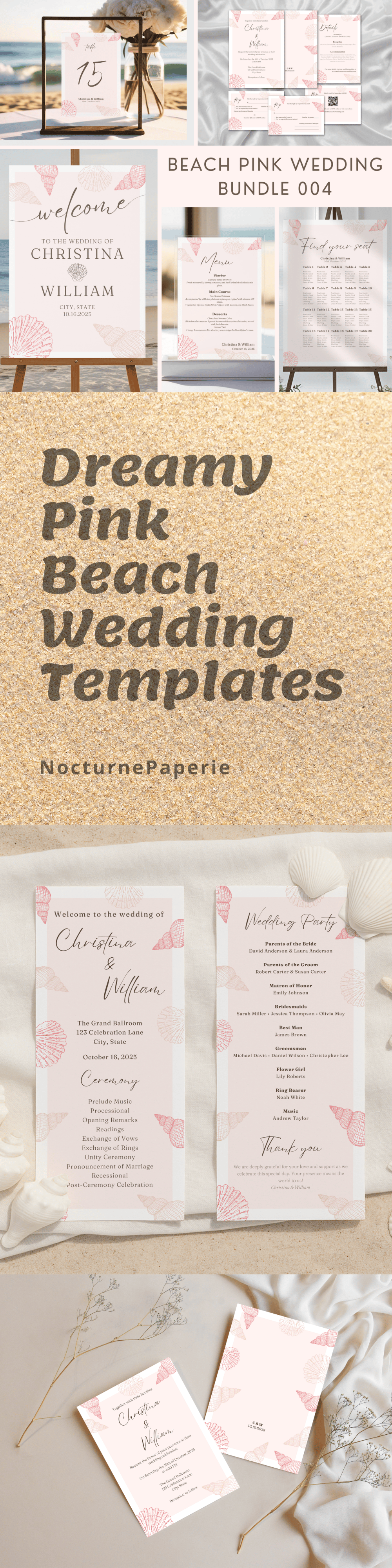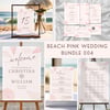 Beach Wedding Bundle Pink Theme Canva Invitation Suite Editable Welcome Sign Custom Event Sign Seaside Seating Chart Ceremony Program 004