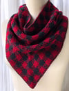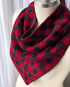 This bandana-style cowl combines double knitting and double-stranded (“marled”) garter stitch to create a reversible plaid/gingham fabric.