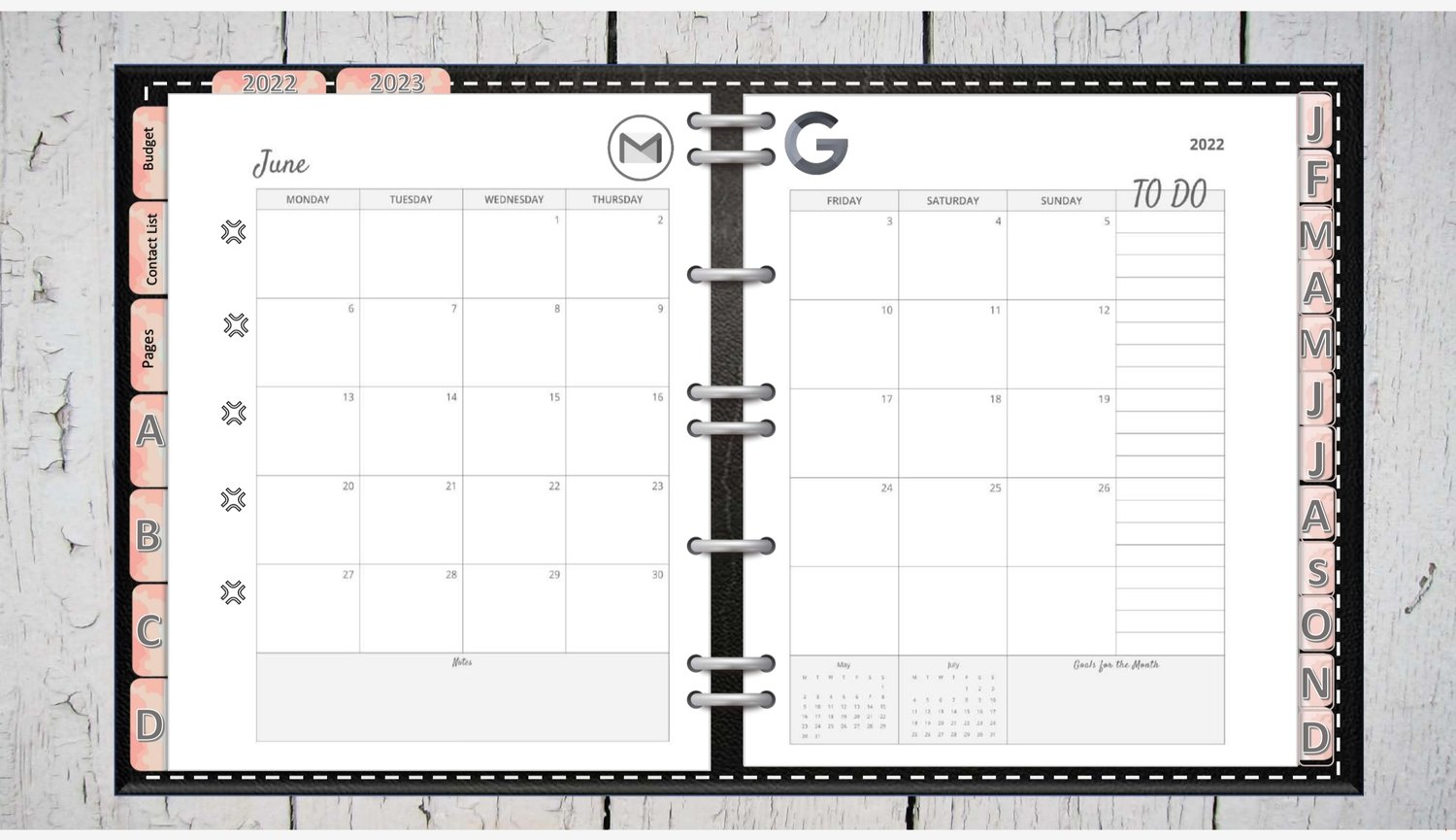 This is the new and improved Minimalist digital planner. It begins September 2022-2023. Each month has links to gmail and google calendar. It has a seperate section for budgets, pages, contact list and 4 individual sections to make anything you want!