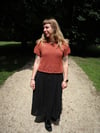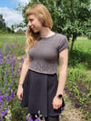 The Furcula tee was inspired by the old wishbone tradition, with the lace resembling wishbones. The tee is knit bottom-up in the round before splitting for the sleeves. I wanted this pattern to work as a lucky charm for everyone, giving everyone the option to make the tee that they feel most comfortable in, whether it’s a cropped or full length version, a classic close fit or a relaxed oversized fit. This tee will work great with high waisted jeans, skirts or layered over dresses.