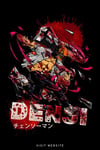 This design features Denji in his fierce Chainsaw Devil transformation, surrounded by blood effects and energy lines, creating a perfect balance of action and artistry.