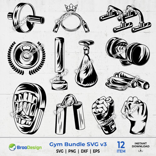 Gym Bundle SVG v3 (SVG, PNG, DXF, EPS)
