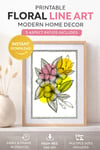 Floral Line Art Printable Wall Decor | Minimal Botanical | Flower Illustration