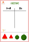 Watermelon Activity Pack includes 6 fun printable activity pages!. Count watermelon Cut & paste, cut the watermelon in pieces, Big & Small Sorting, Dot the seeds and more!
