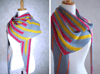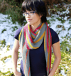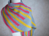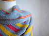 Knit in garter stitch, with increases and decreases to shape the shawl into its asymmetrical triangular shape. The first section consists of thin stripes, followed by a second half of big, bold stripes. Use eye catching colors to capture attention!