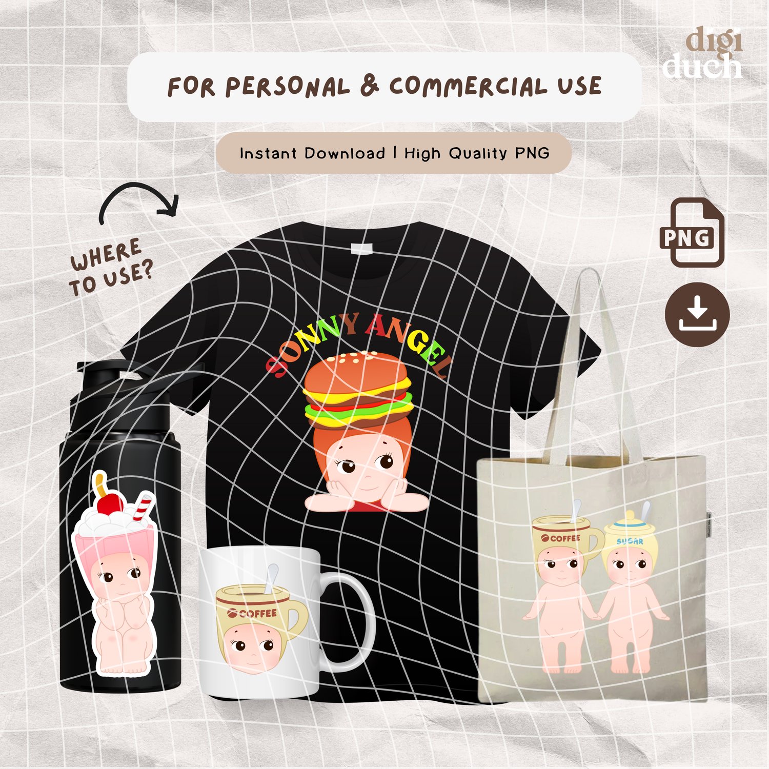 This adorable Sonny Angels Snack Series includes over 52 high-quality PNG and SVG files featuring 13 unique food-themed Sonny Angel characters, each in 4 fun versions! From burgers and fries to milkshakes and condiments, these cute digital illustrations are perfect for your creative projects.