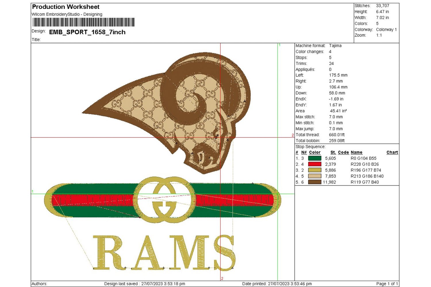 Guc.ci Los Angeles Rams Logo Embroidery Design Files, NFL Rams, NFL Logo Embroidery Files, NFL Los Angeles Rams Machine Embroidery Design, Digital Downlo