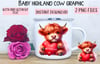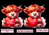 Cute baby highland cow with heart. One with “you mooove me” and one without to personalise. Valentine, love