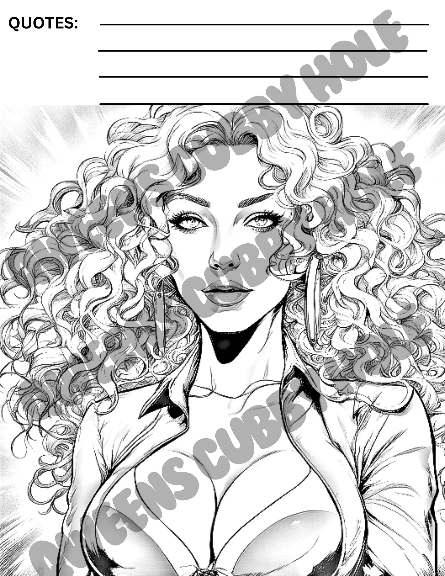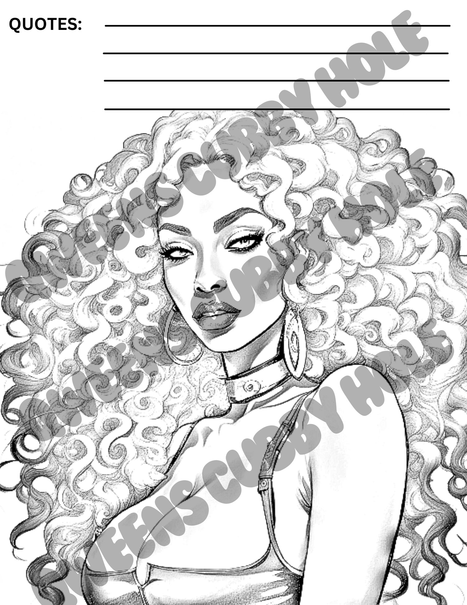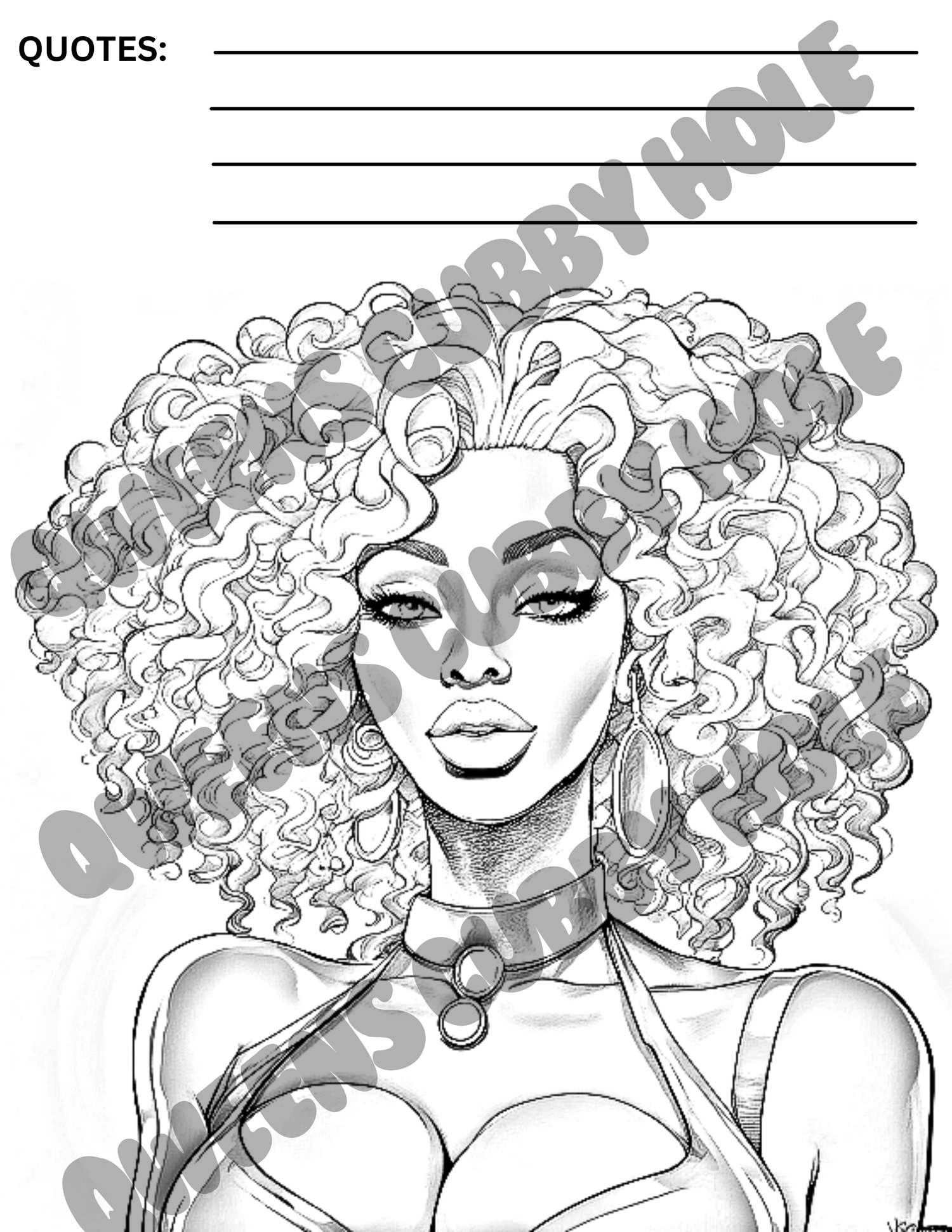 CURLY CURL COLORING BOOK with quote section 30 Pages + COVER