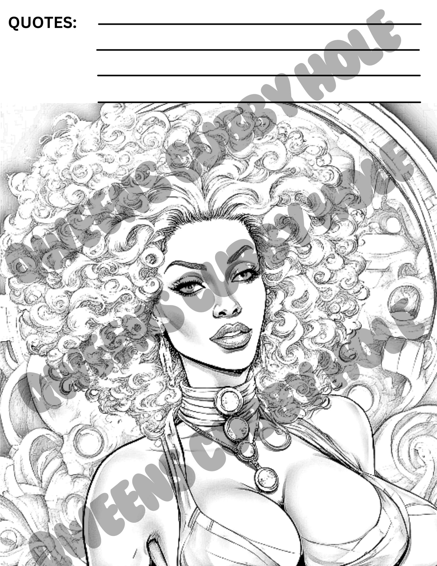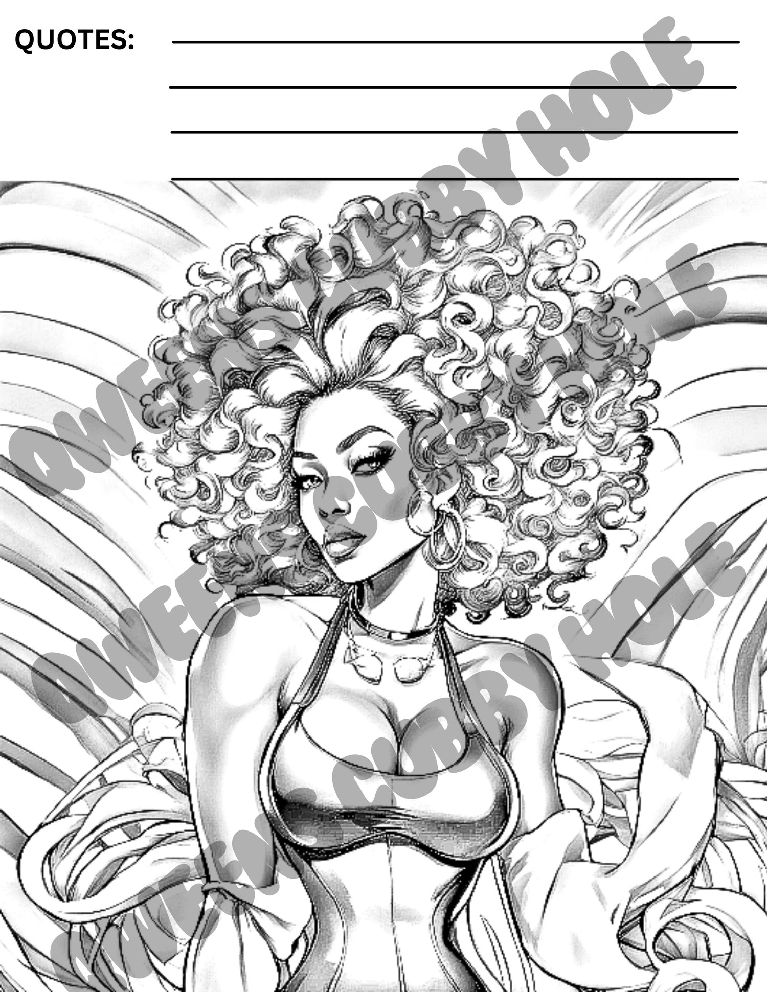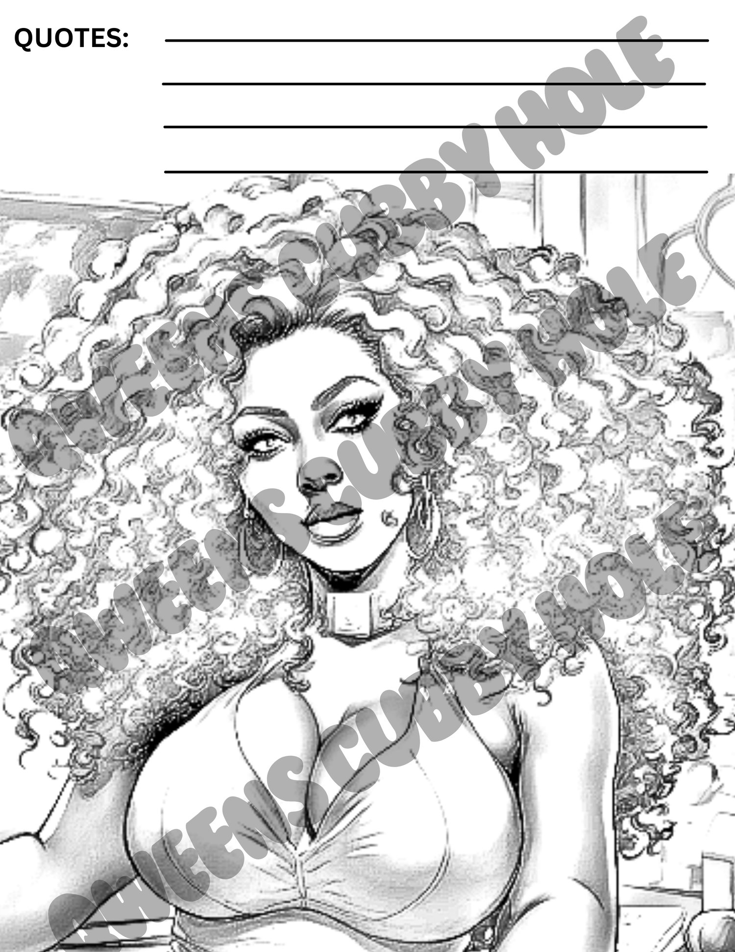 CURLY CURL COLORING BOOK with quote section 30 Pages + COVER