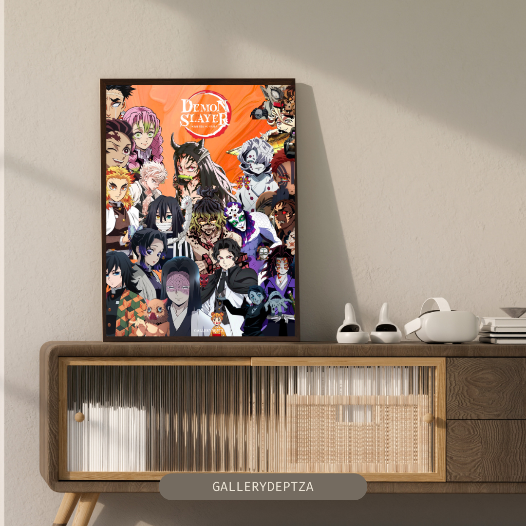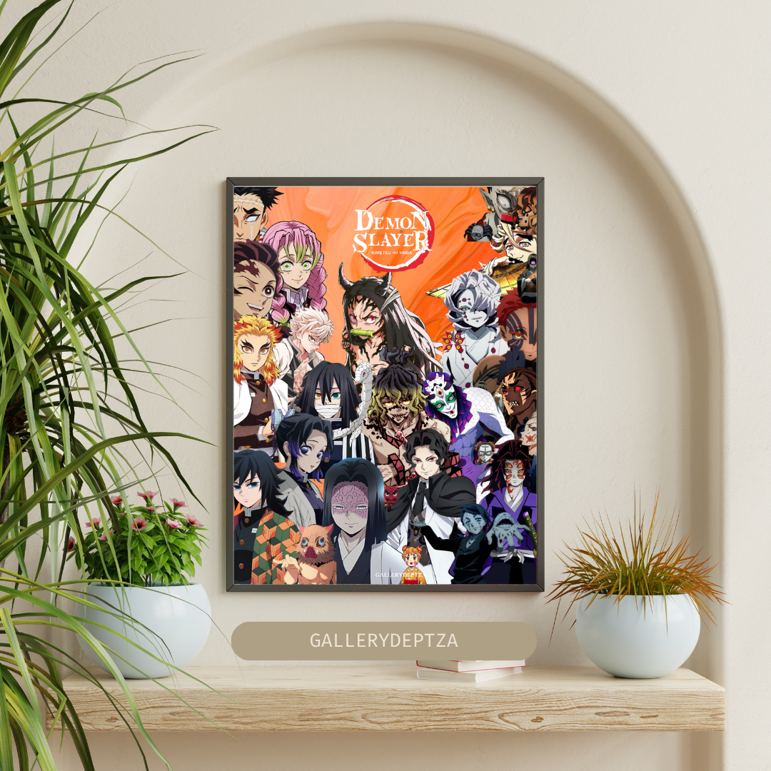 Unleash the power and beauty of anime with this Demon Slayer digital art poster, featuring the legendary 12 Kizuki and Hashiras set against a striking orange background. This bold, detailed design captures the essence of Kimetsu no Yaiba and makes a perfect addition to any anime fan’s collection.