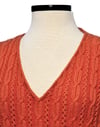 Materials: Sport weight wool blend yarn: 820 (925, 1025, 1135) (1330, 1445, 1530) (1750, 1855, 1960, 2155) yards. Model knit in 1/2 N 1/2 by Kolláge (50% milk / 50% wool; 50 gram hank = 174 yards): Color# 7205 Persimmon.
