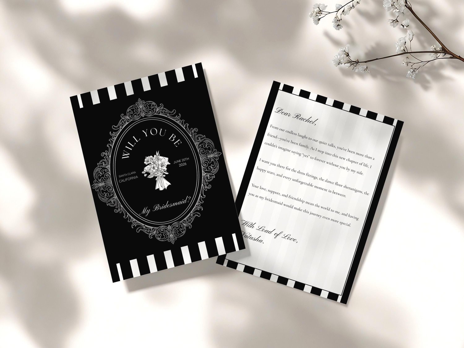 Editable Bridesmaid Proposal Card Template (Front & Inside Design)