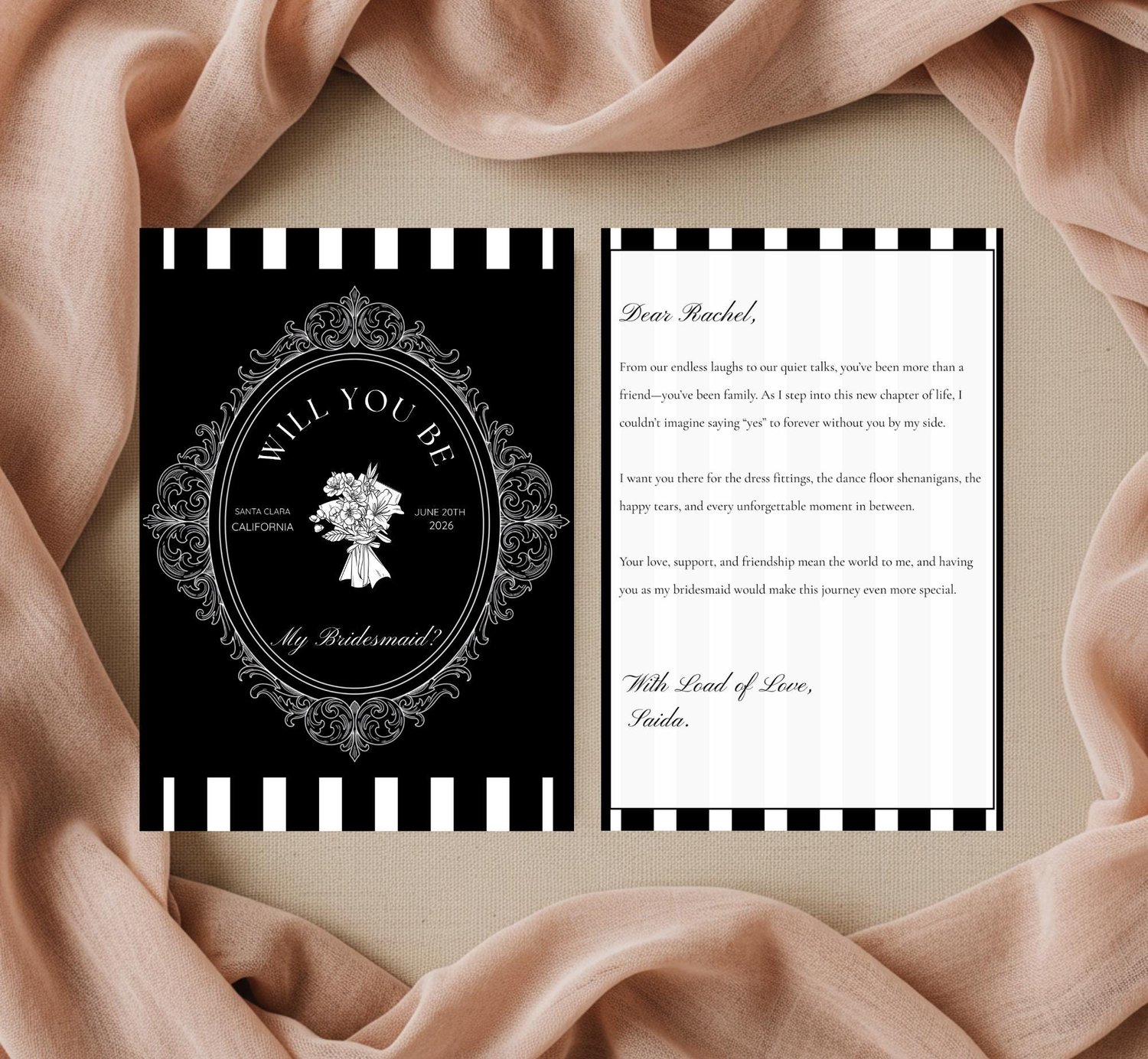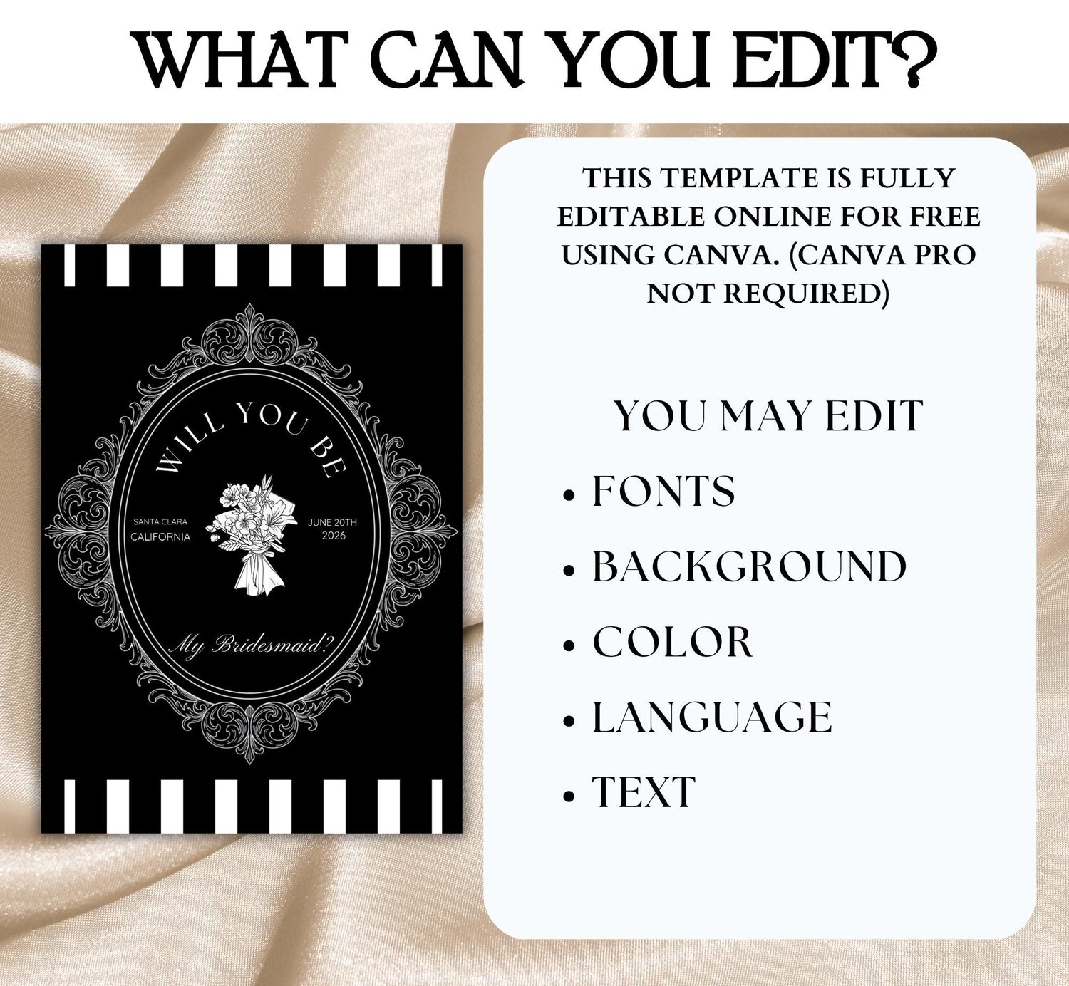Whether you’re planning a modern wedding, a glamorous black-tie event, or a vintage-inspired celebration, this card is the perfect way to invite your best friends to stand by your side.