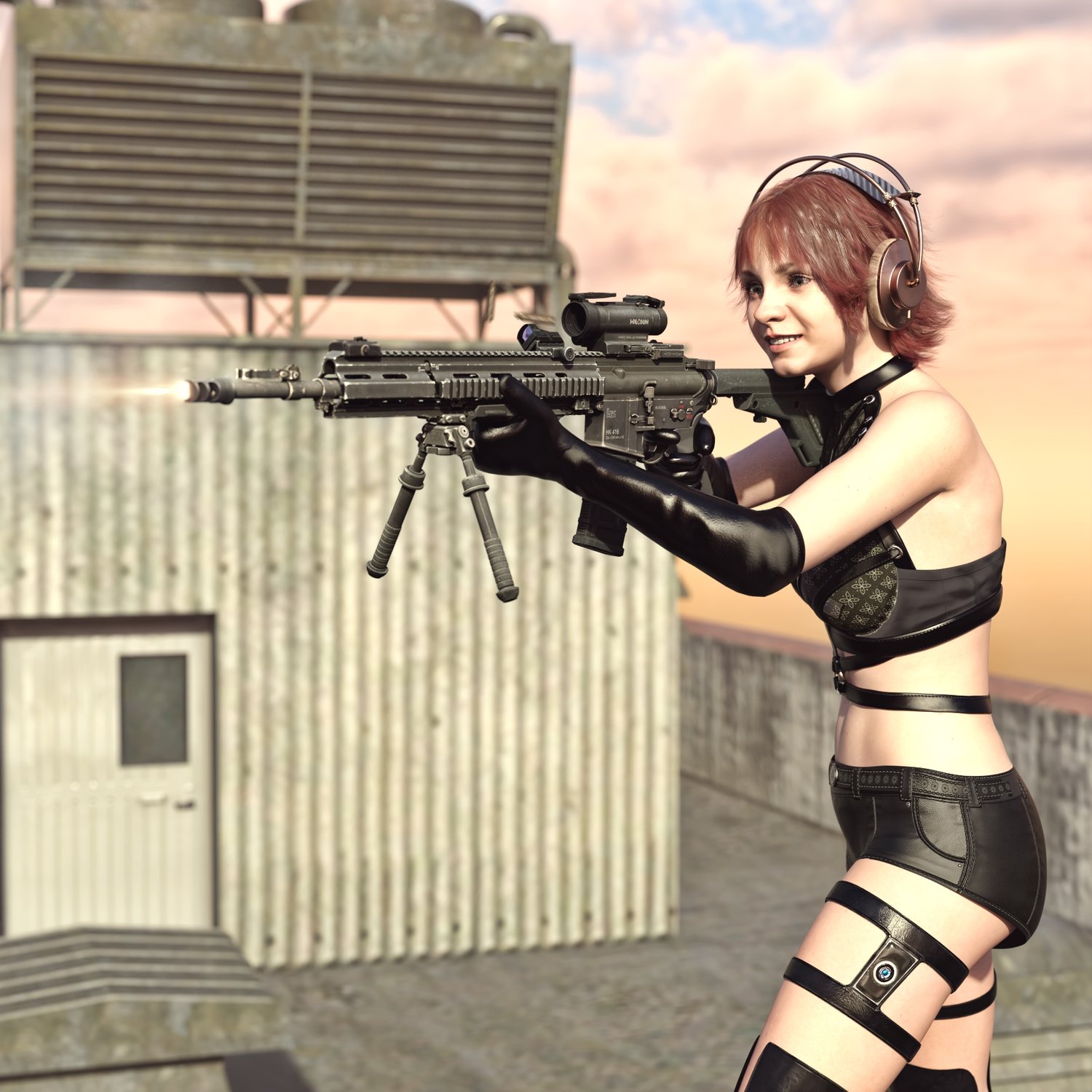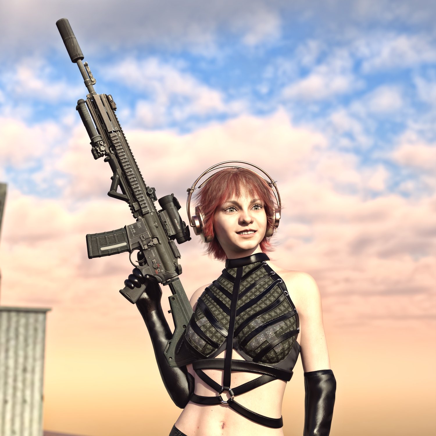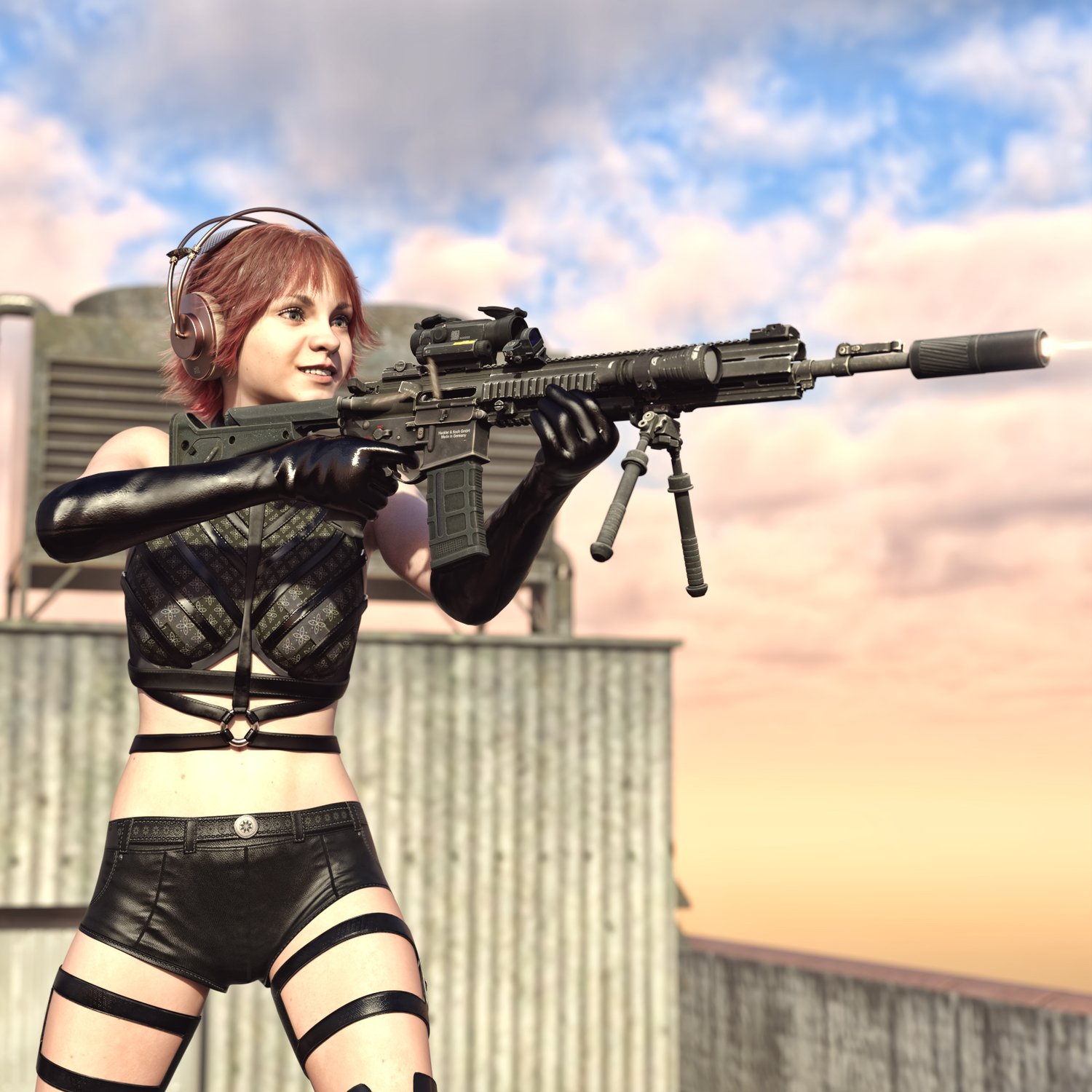 A European take on the classic AR 15 assault rifle, this time in a marksman rifle variant, for more punch and precision. Short stroke M4 platform for various military applications. German military rifle, cool looking and a good performing one. Converted and rigged for use with DAZ. Trigger, safety, bolt etc also rigged for more realistic pictures. Includes a silencer, an optic, a red dot, a light and some other accessories for various porpoises and pictures. Since parts are rigged, the gun can be used as just the basic configuration or an upgraded modern variant.