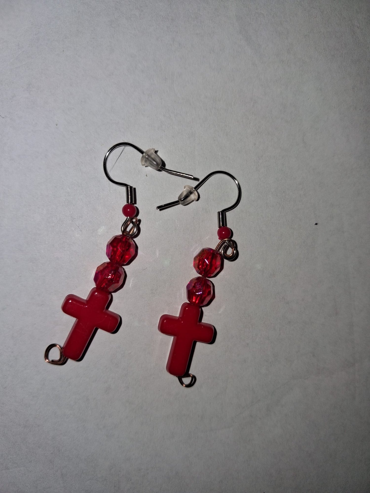 Rode oorbellen met kruis