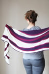 Garter sections take turns with mesh in this eye-catching shawl, which is knit down and out from the center using short rows to add an asymmetrical touch.