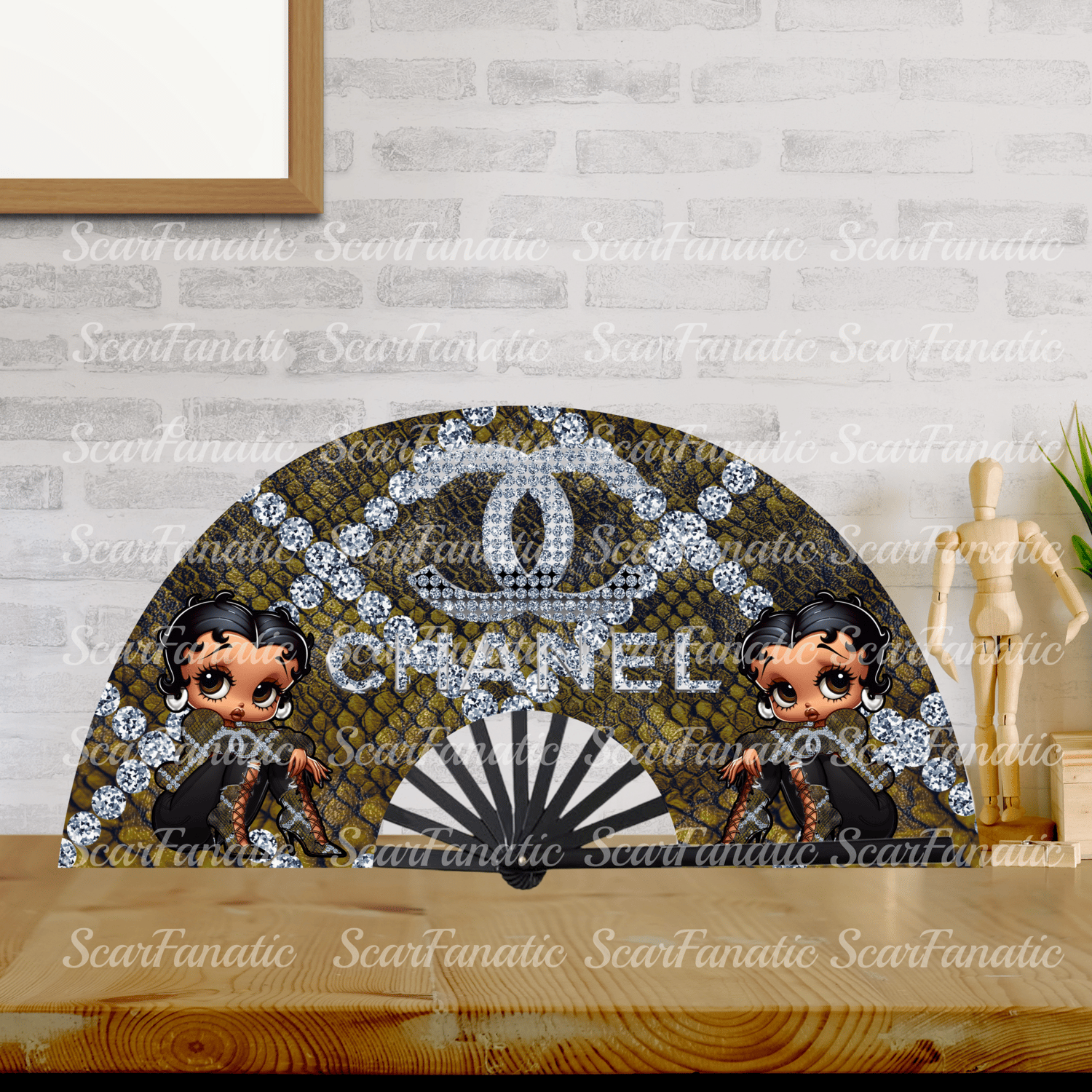 Yellow and Black Snakeskin Diamond Chnl Betty Boop Clack Fan Design Template