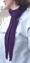 Finished scarf is 77” by 3” (192 by 7cm) [unblocked]. Blocking will make scarf wider and shorter.