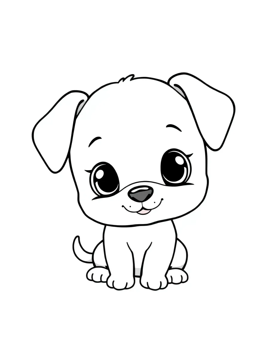 This cute puppy coloring page is perfect for toddlers, preschoolers, and early learners who love friendly animals and big-eyed smiles.
