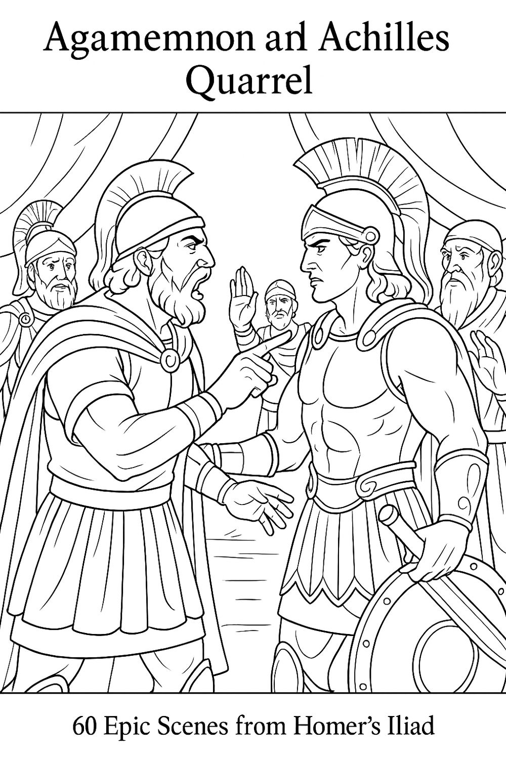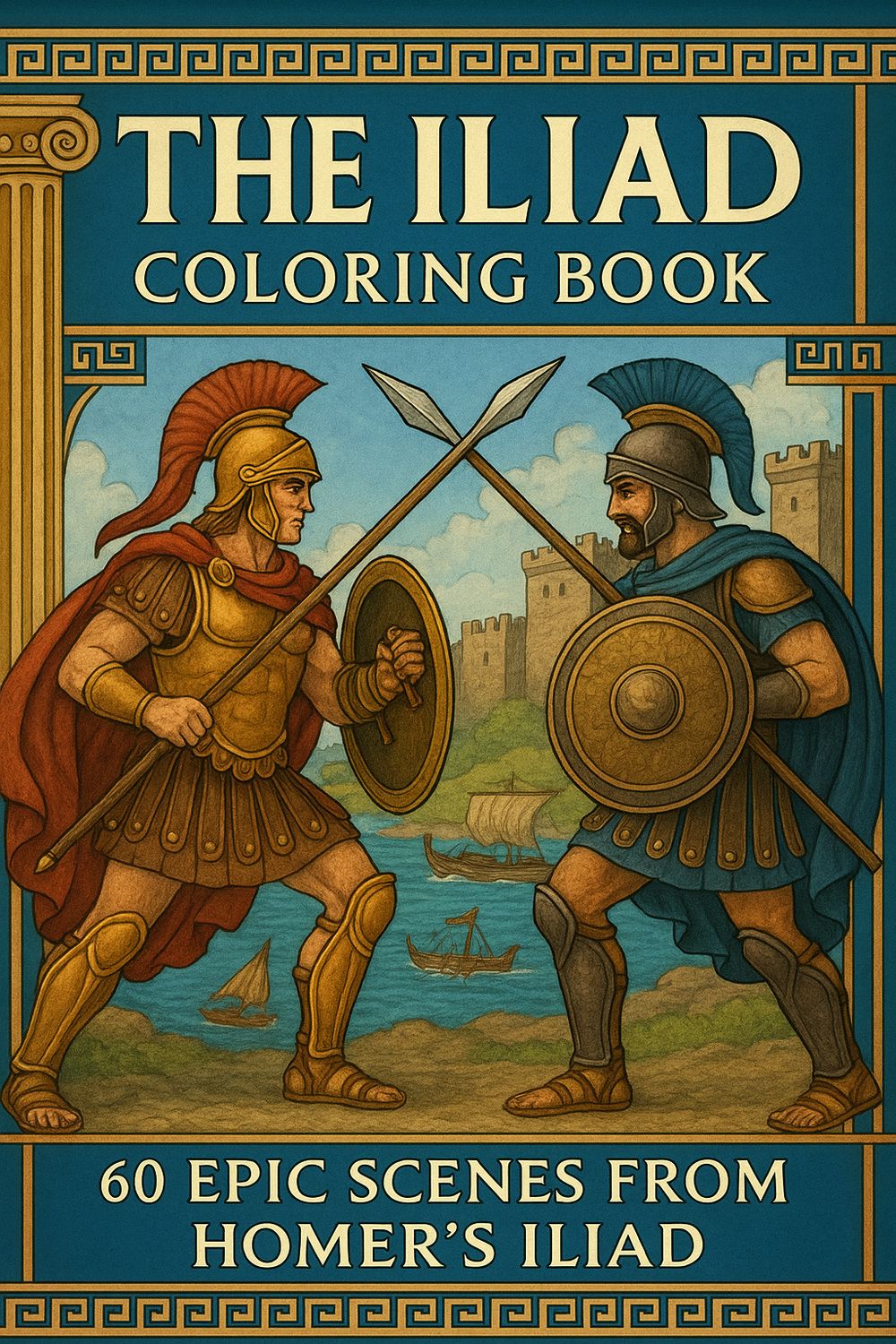 Iliad of Homer, coloring ebook, 61 designs, digital product, instantly download
