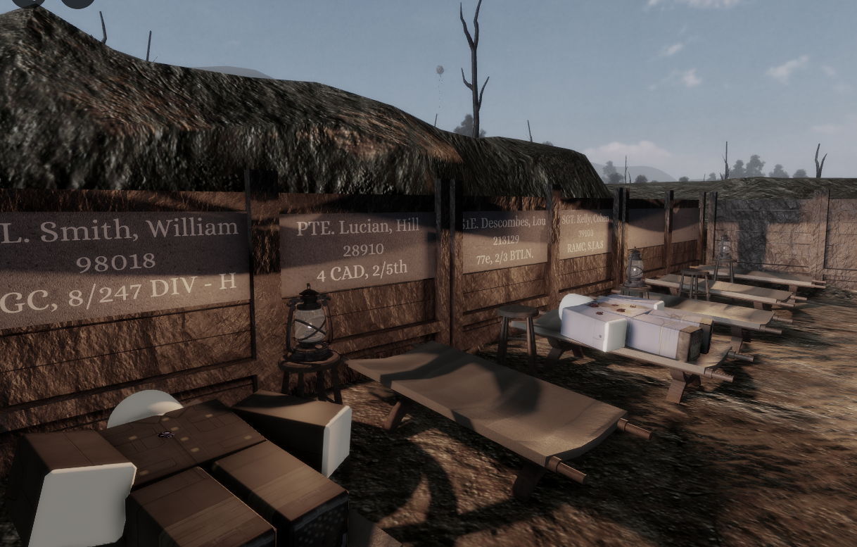 - American Expeditionary Force Spawn Room fitted with historically accurate and modular gear