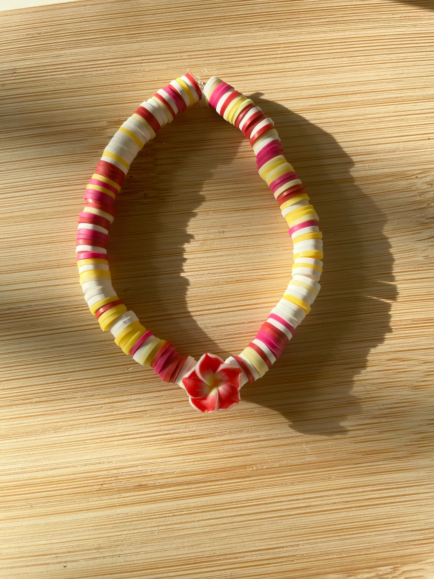 Bring the happy vibes everywhere you go with our Cherry Bloom Bracelet! This cutie features sweet pink, yellow, and white clay beads, topped off with a charming red flower thatβs bursting with joy. Itβs like wearing a little piece of sunshine on your wrist!