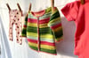 The ridged texture of this round-necked cardigan makes this a cozy, insulating cardi that’s perfect for keeping your little one warm. When worked in a self-striping yarn, the colourful stripes play off the horizontal lines of the stitch pattern.
