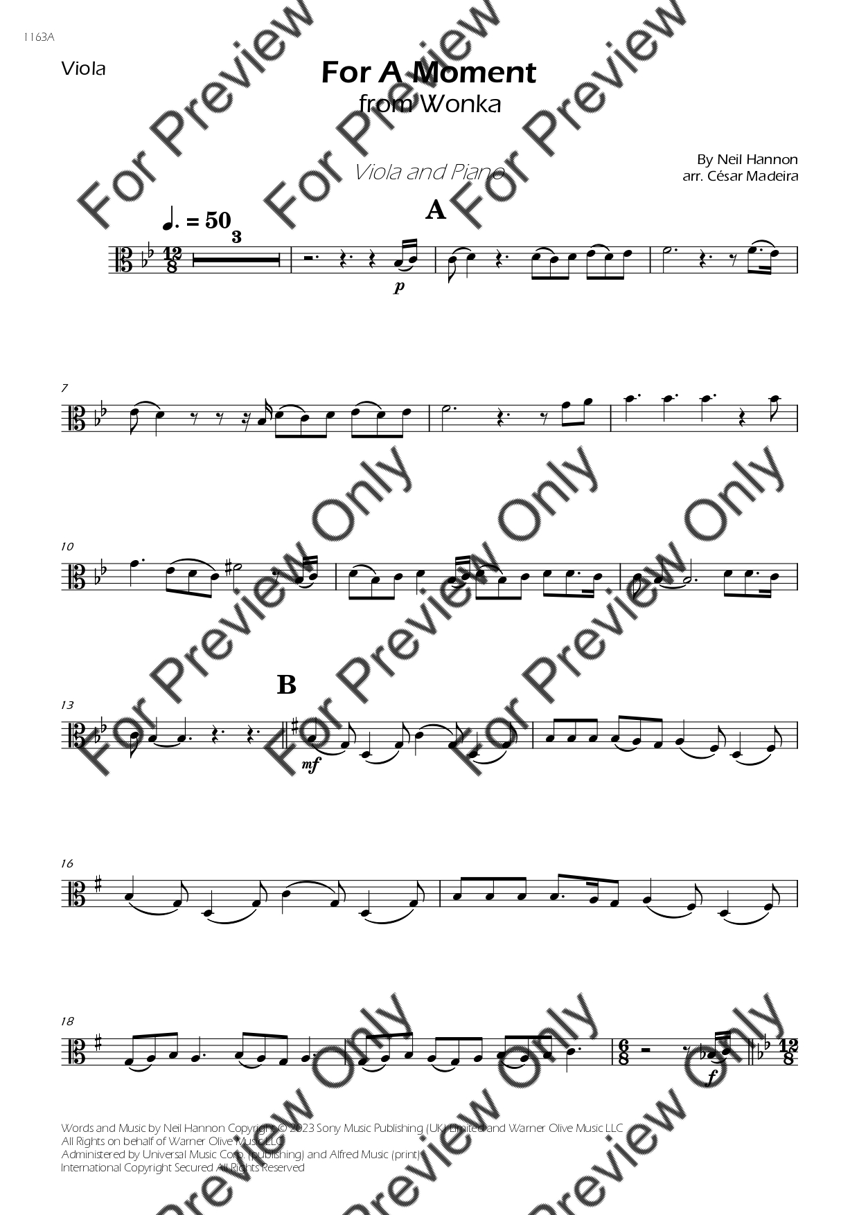 For A Moment from Wonka. Arrangement for Viola and Piano. With Full Score and Individual Parts. Have fun!