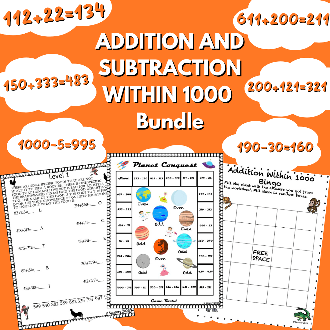 Addition & Subtraction within 1000 Bundle | 2nd and 3rd Grade Math Activities