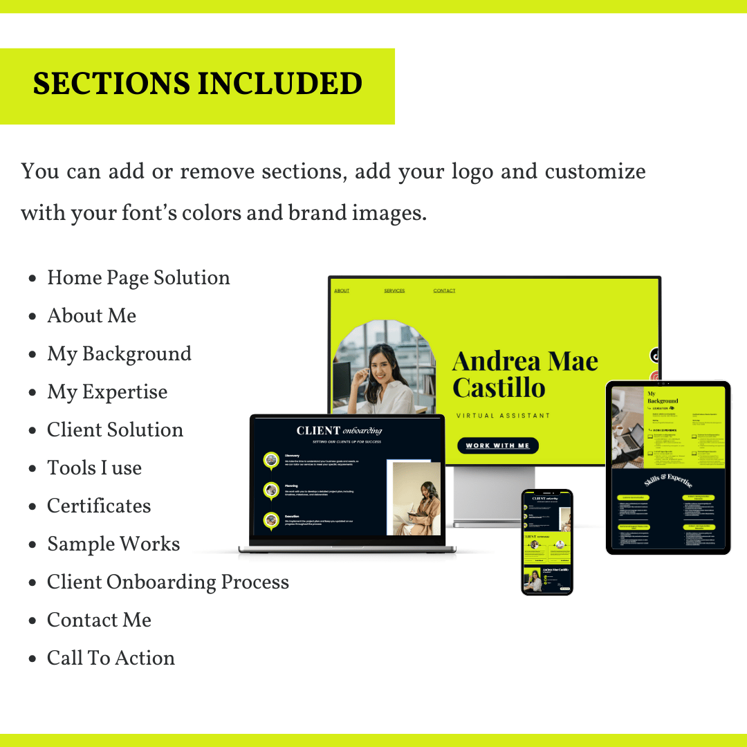 Professional Customer Service Portfolio Website Template for New VAs & Freelancers