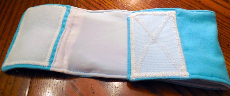 *If you want me to make the bellybands for you, it would cost $10 for each bellyband. Please message / convo me for purchasing, if interested. Shipping included for US customers only, extra for international customers. I use flannel, Velcro, and stretch nylon for the pocket, ripstop nylon can be used instead of flannel for the outer fabric panel.