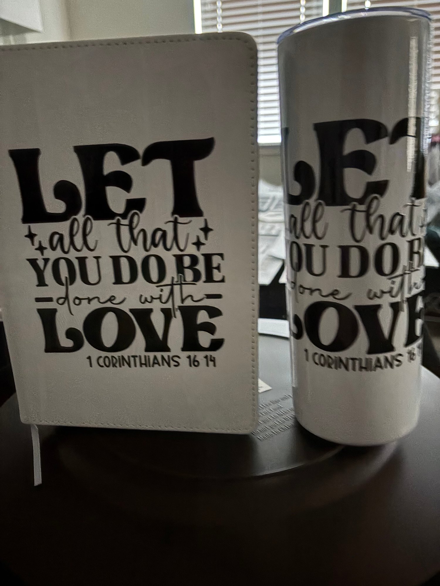 Let all that you do be done with LOVE journal and 20 oz tumbler bundle.