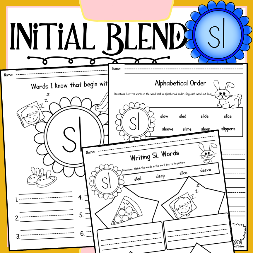 With all the pictures included students will have a visual representation of each blend. Words included: sleep, sled, sleeve, slice, slide, slime, slow, slippers.