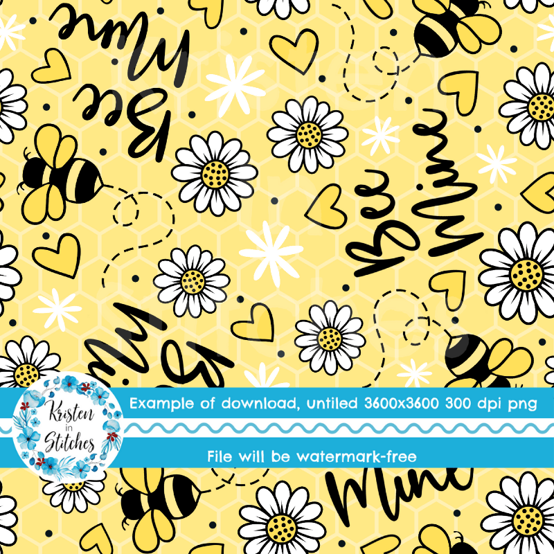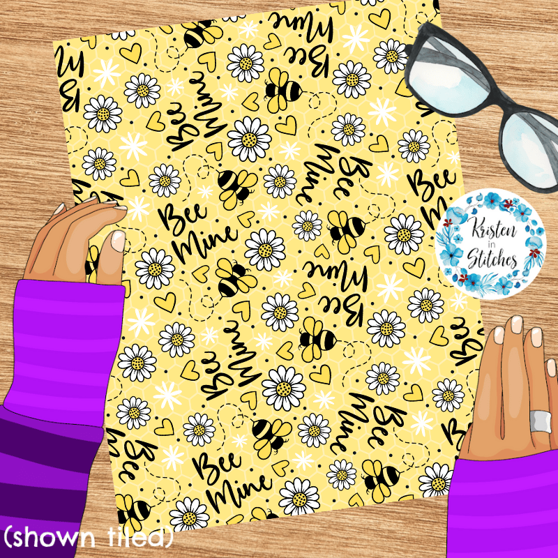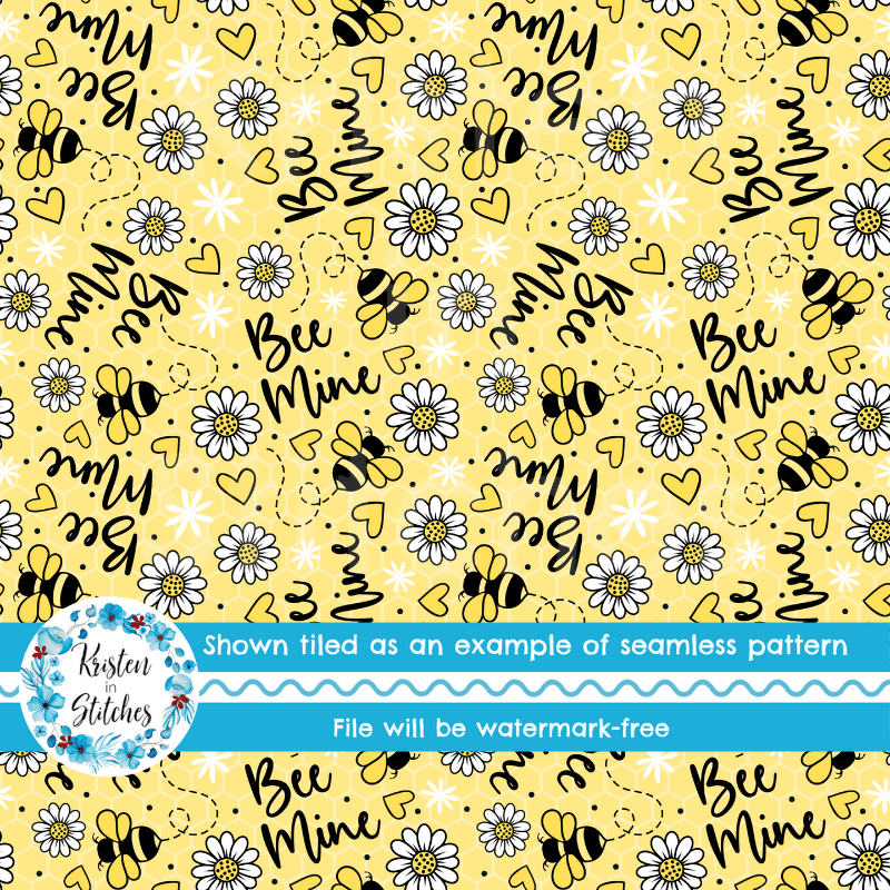 Bee Mine Be My Valentine Bumblebee Seamless Pattern, Yellow