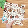 Coffee Whore featuring mugs, cups, pots, beans and flowers on ivory.
